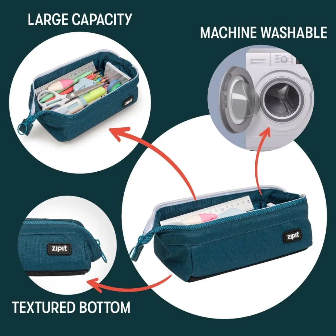 ZIPIT Lenny Pencil Case Large Capacity Pencil Pouch Pencil Bag for School College and Office Teal