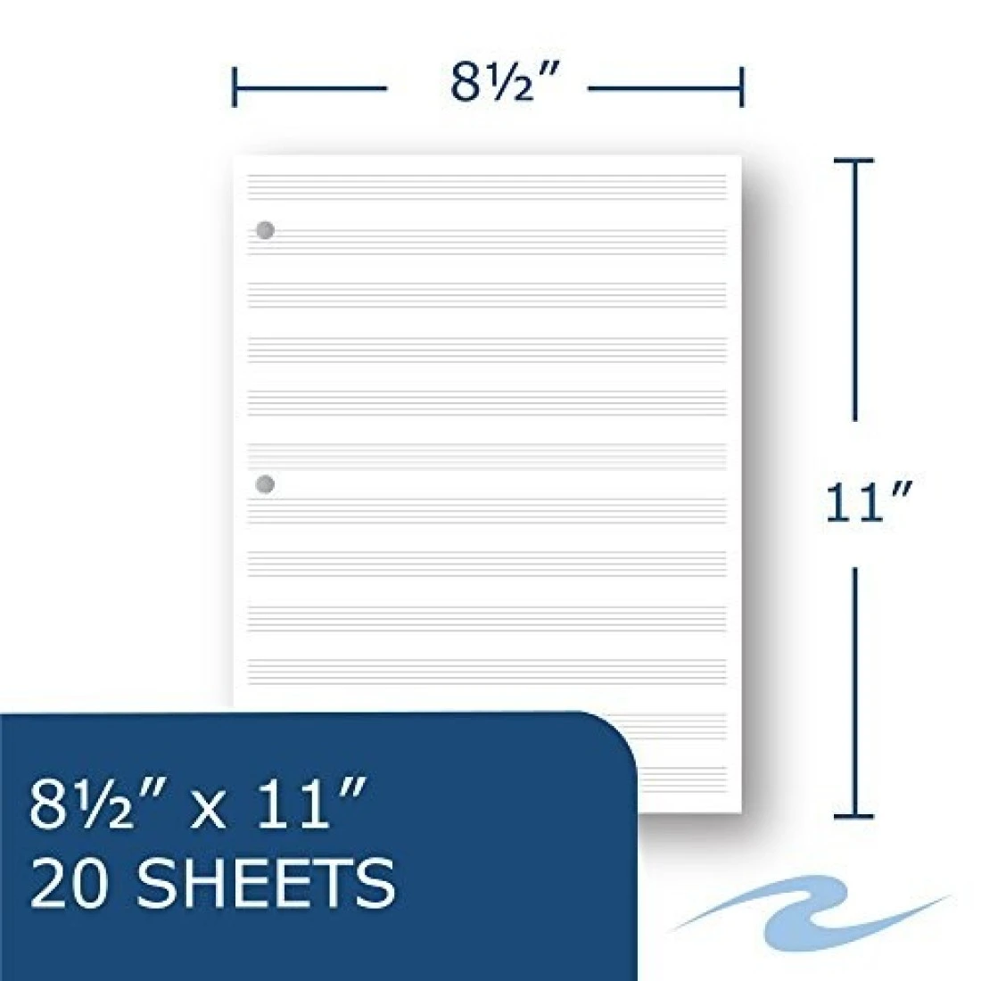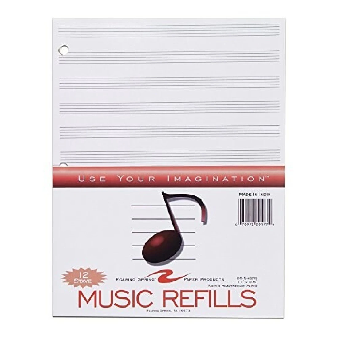 Roaring Spring Loose Leaf Music Filler Paper 20 Sheets 85x11 with 12 Staves of Music Lines Heavyweight 24 Smooth White Paper 3 Hole Punched Pack of 1