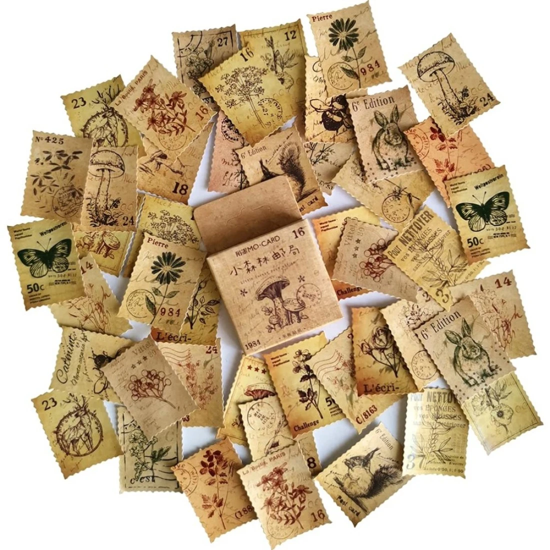 Vintage Scrapbooking DIY Sticker Set Plant Flower Animal Mushroom Postmark Retro Stamp Stickers for Journaling Art Craft Scrapbook Planner Diary Calendar Card Tag Cup Retro Theme Project Deocr