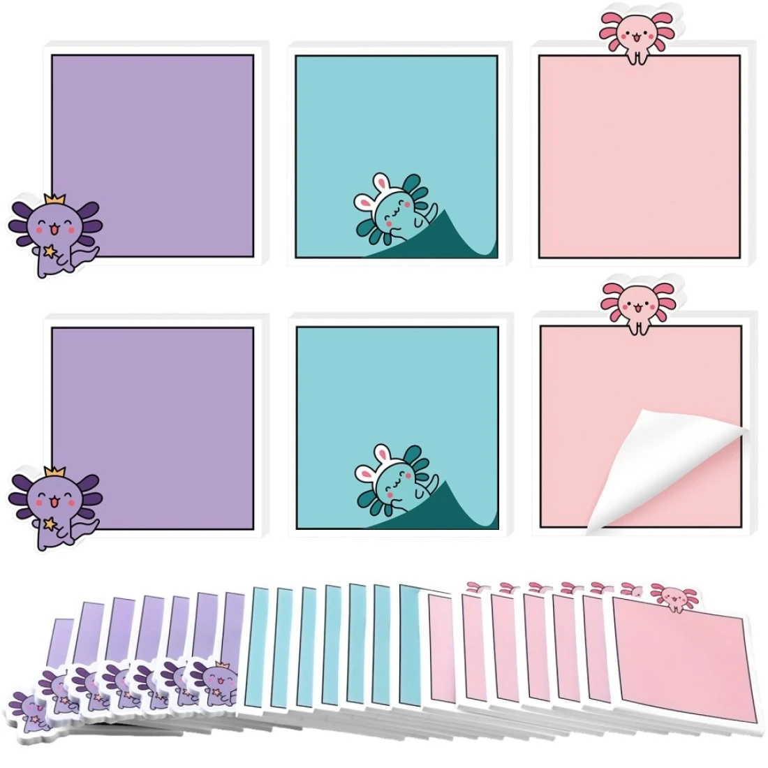 Feifeiya 24 Pack Christmas Stick Notes Gifts for Students Axolotl Self Stick Notes Pads Cute Axolotl Sticky Memo Gift for Axolotl Party Teacher Gift School Office Stationary, 720 Sheets in Total