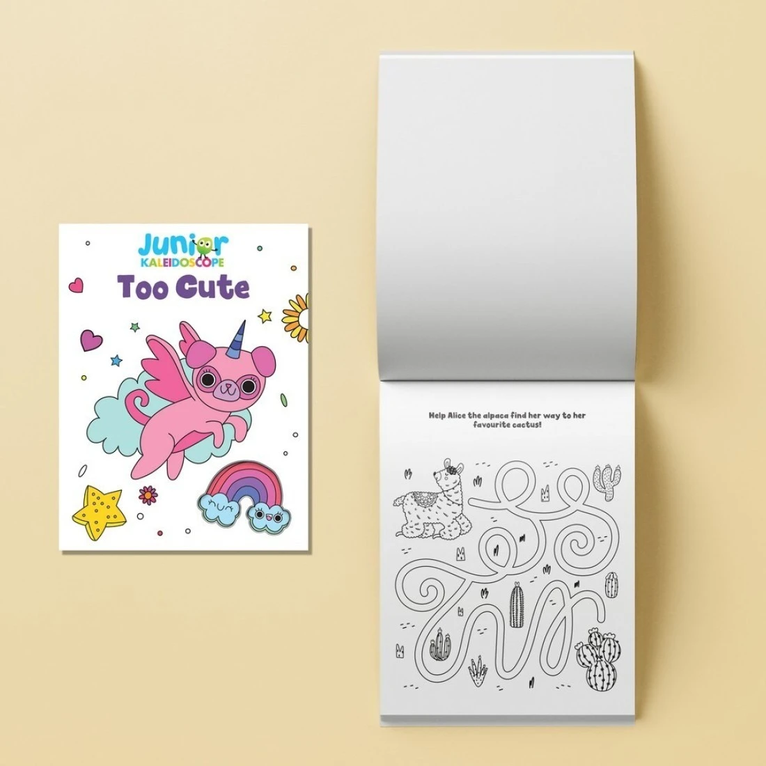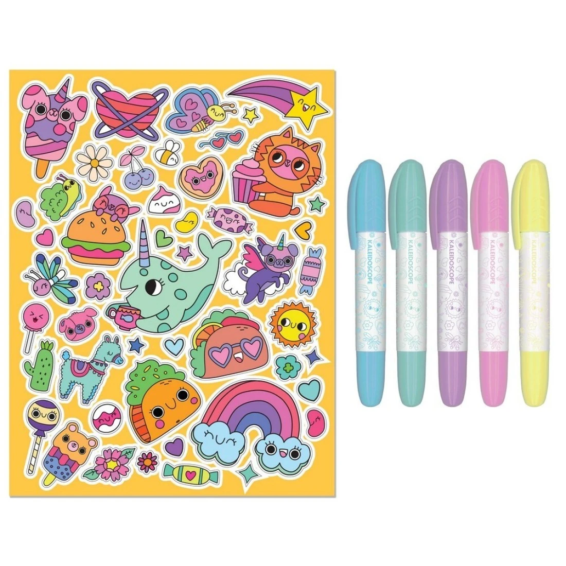 Hinkler Jr Kaleidoscope Colouring Kit – Too Cute Edition, includes 64-page Coloring Book with 50 Stickers and 5 Markers, Adorable Animal Designs for Kids, Ideal Gift for Cute-Themed Art Play