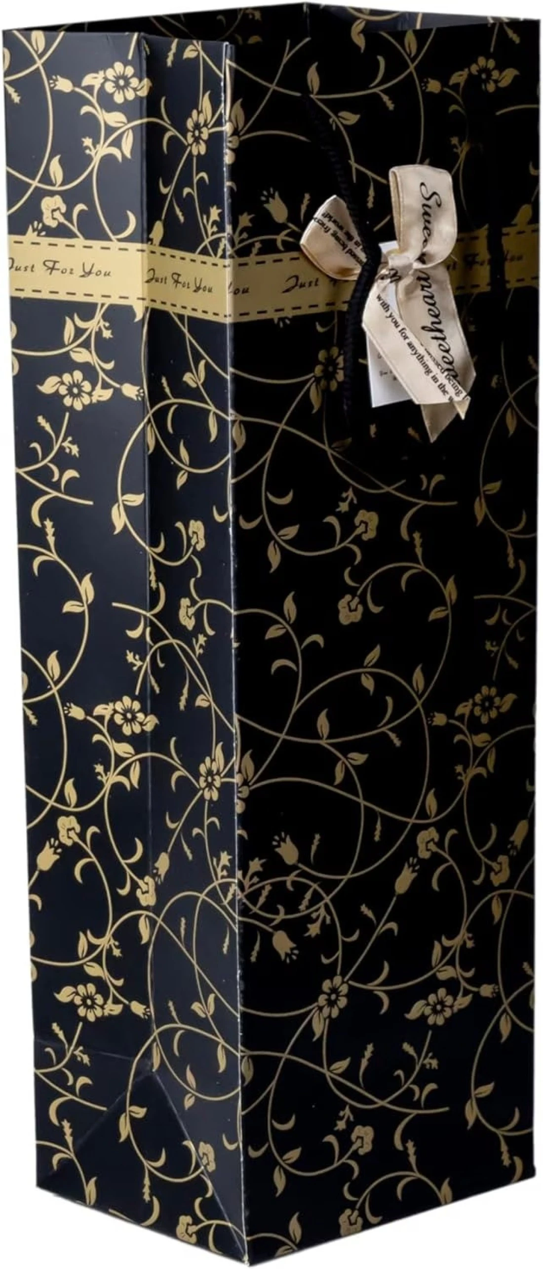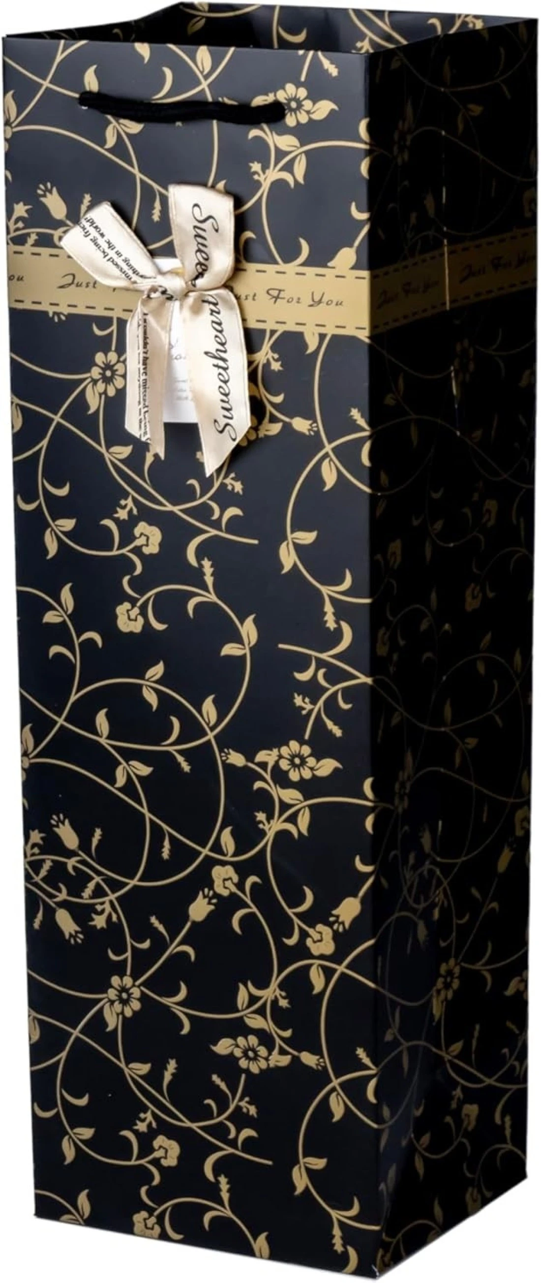 Cuisine Art Wine Bag, 1 pc Wine Gift Paper Bag Single Bottle Wine Gift Bag Red Wine Tote Bag, 5Pcs 4.7 x 3.9 x 14.2’’ Wine Gift Bag Kraft Paper Wine Bag with Handles Gold-Black