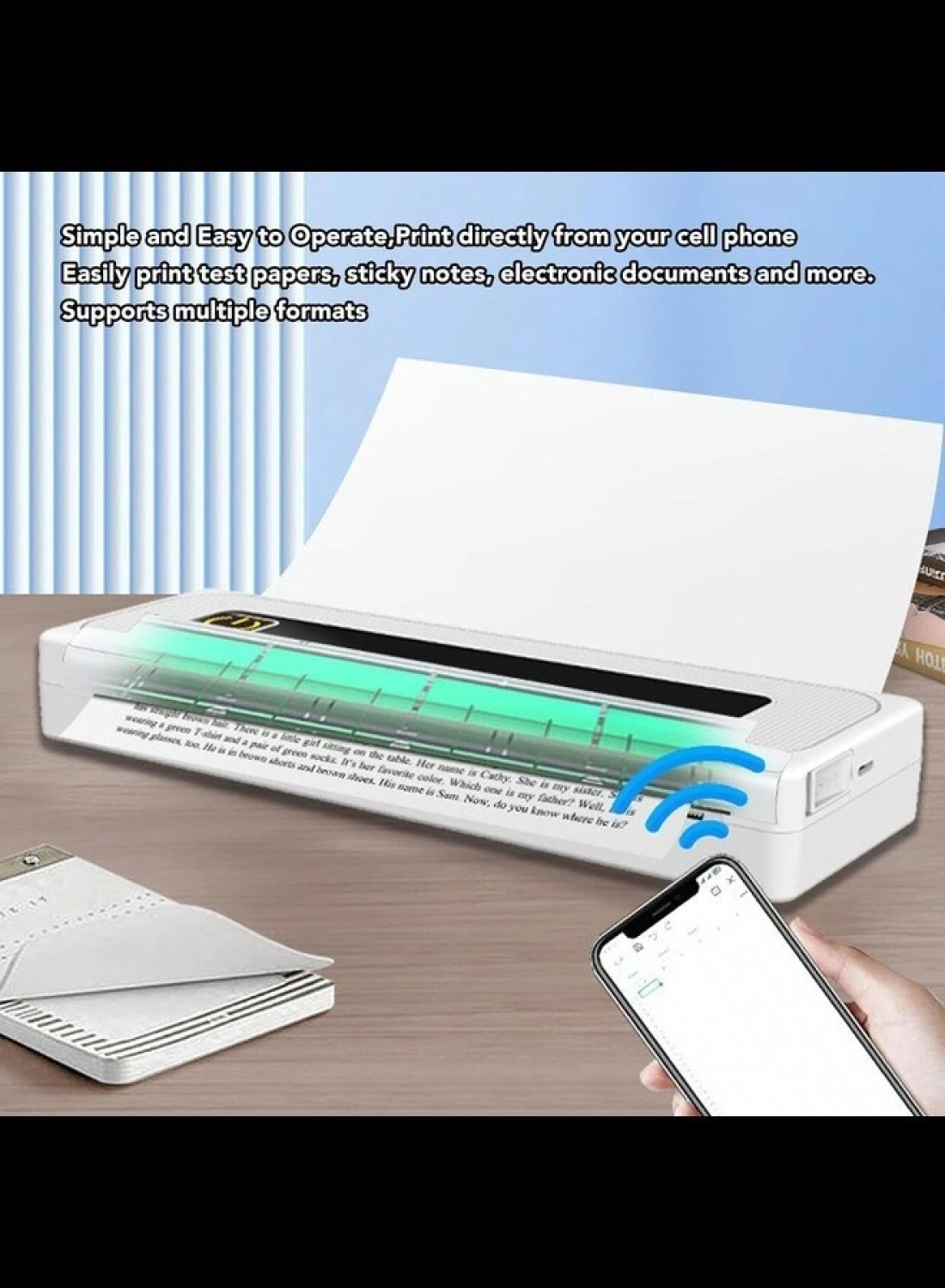 • Bluetooth Connectivity: Easily connect wirelessly to devices for printing.