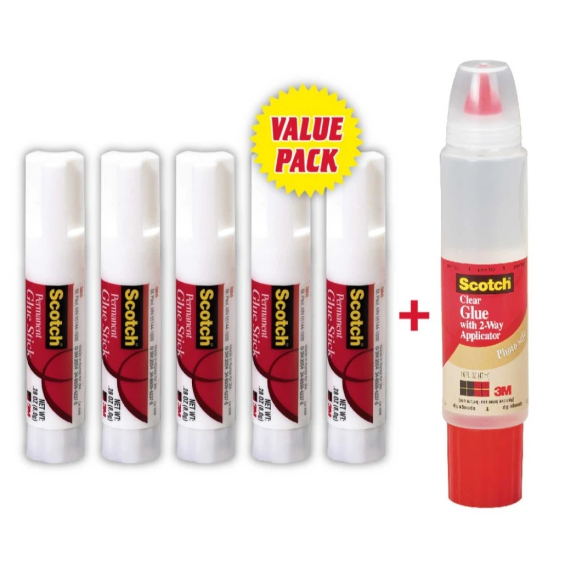 3 أم سكوتش عصا صمغ دائمة 20 غرام 5 قطع - أبيض وغراء شفاف مع أداة توزيع في اتجاهين - شفاف