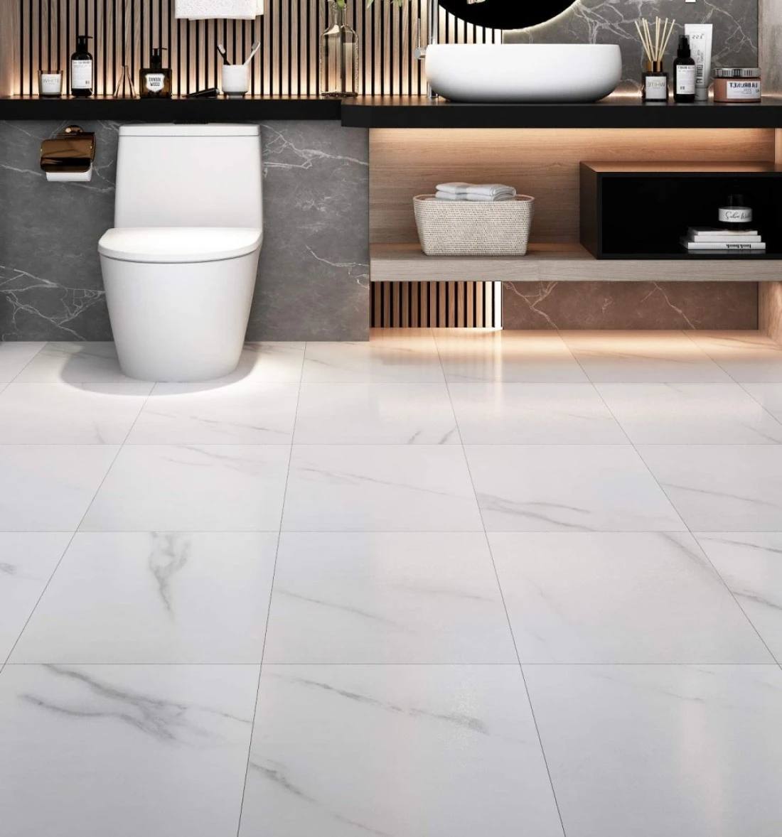 Livelynine Peel and Stick Floor Tile Stickers Waterproof Vinyl Flooring White Marble Vinyl Tiles for Kitchen Bedroom White Laminate Flooring Bathroom Linoleum Flooring Sheet Adhesive 12X12 Inch 4-Pack