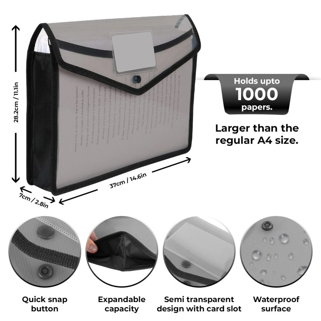 Essen Plastic File Folder Clear Transparent Bag Expandable File Organizer Document Holder - Set of 5 colors