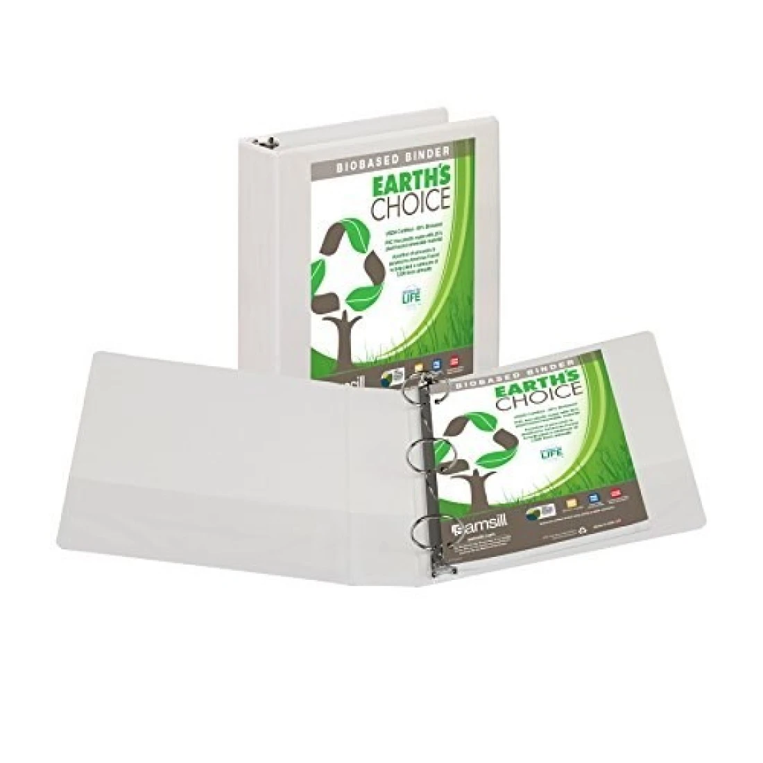 Samsill Earths Choice Biobased Durable 3 Ring View Binder 2 Inch Round Ring Up to 25 Plant Based Plastic USDA Certified Biobased White