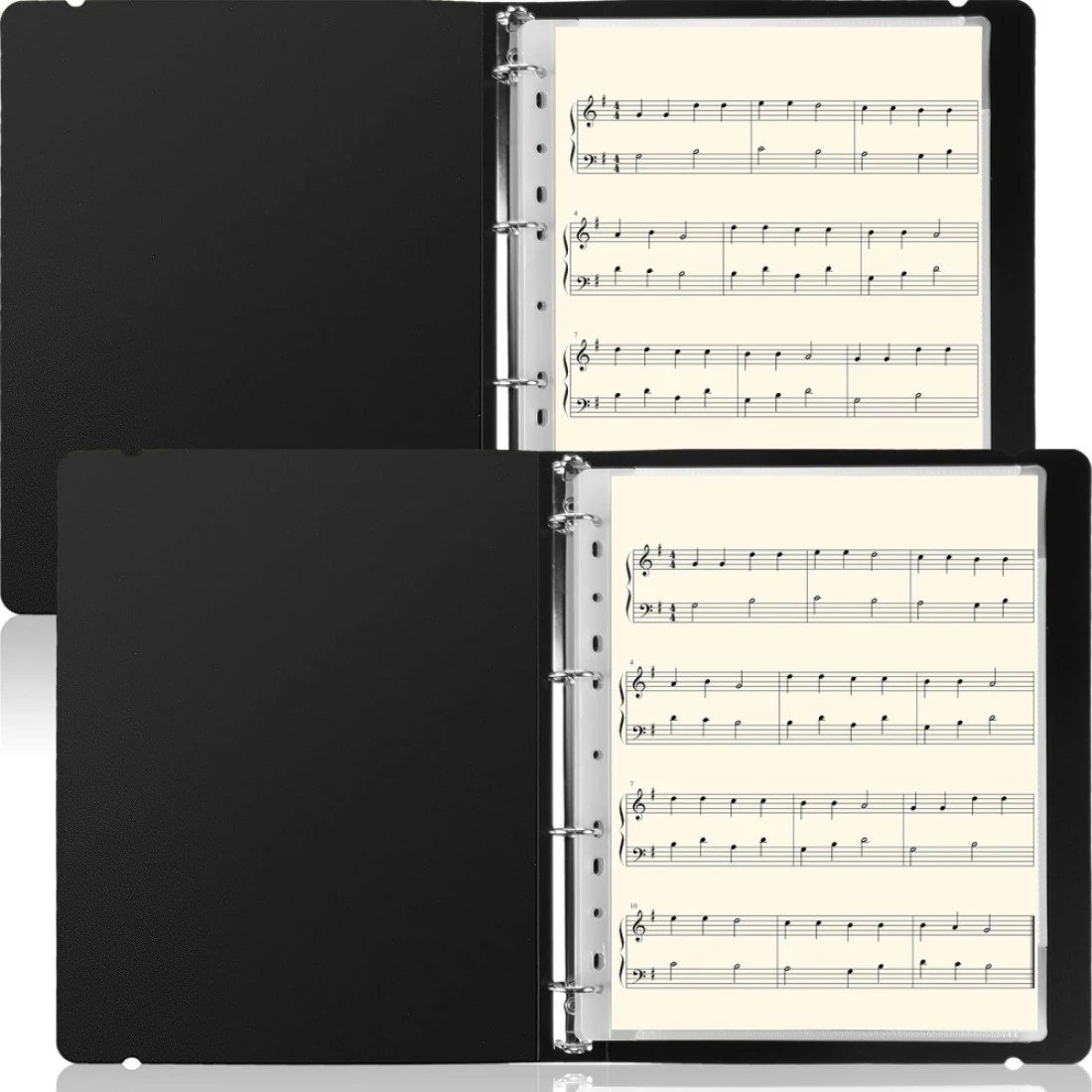Dunzoom 2 Pcs Sheet Music Binder A4 Size, 40 Sleeves 80 Pages Removable Music Holder Organizer for Sheet Music, Black Music File Folder, Paper Documents Storage Holder