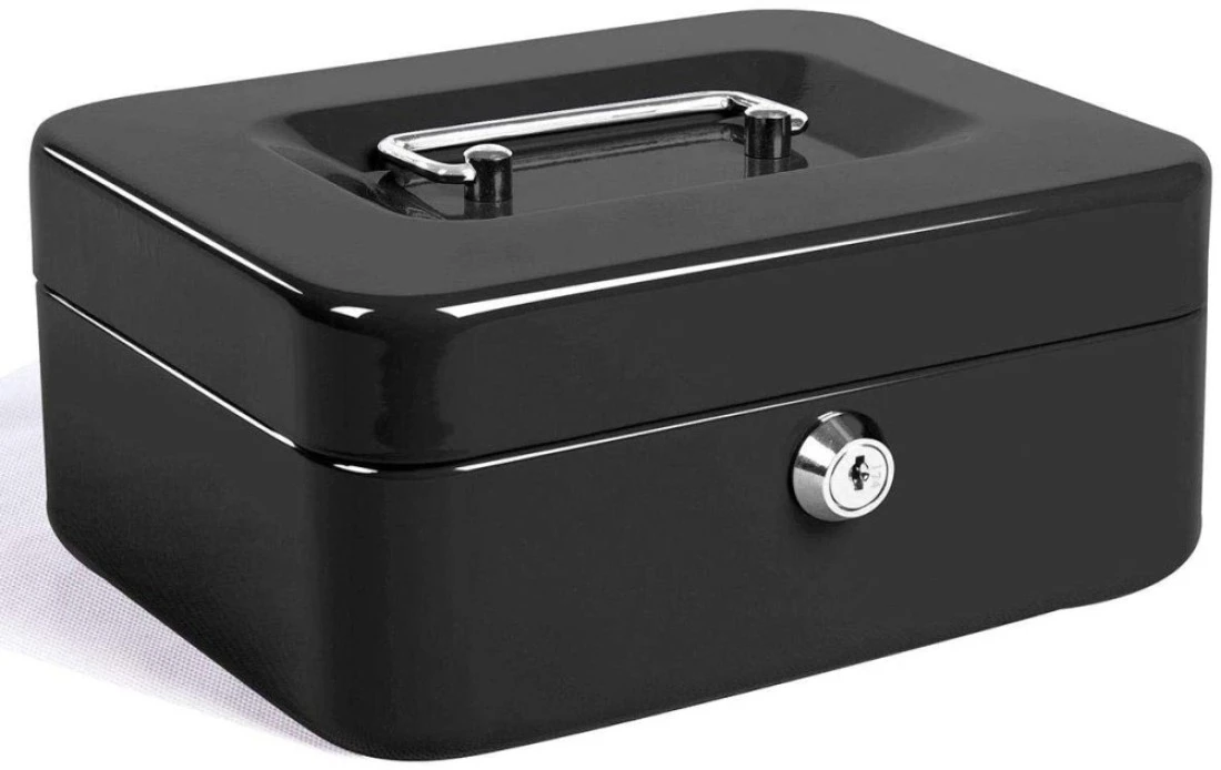 METAL CASH BOX, CASH COIN TRAY AND 2 KEYS SIZE: 150 mm x 120 mm x 80 mm