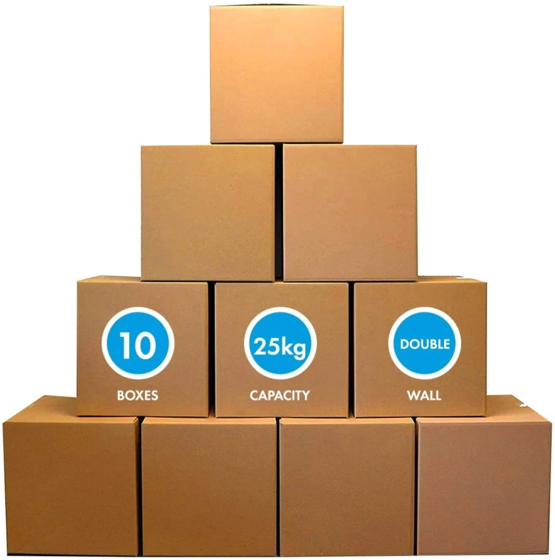 Markq [10 Pack] Medium Double Wall 100% Recyclable Corrugated Cardboard Moving Boxes with 25 KG Capacity, 45 x 45 x 45 cm Brown Carton for Packaging, Shipping and Storage, 5 ply