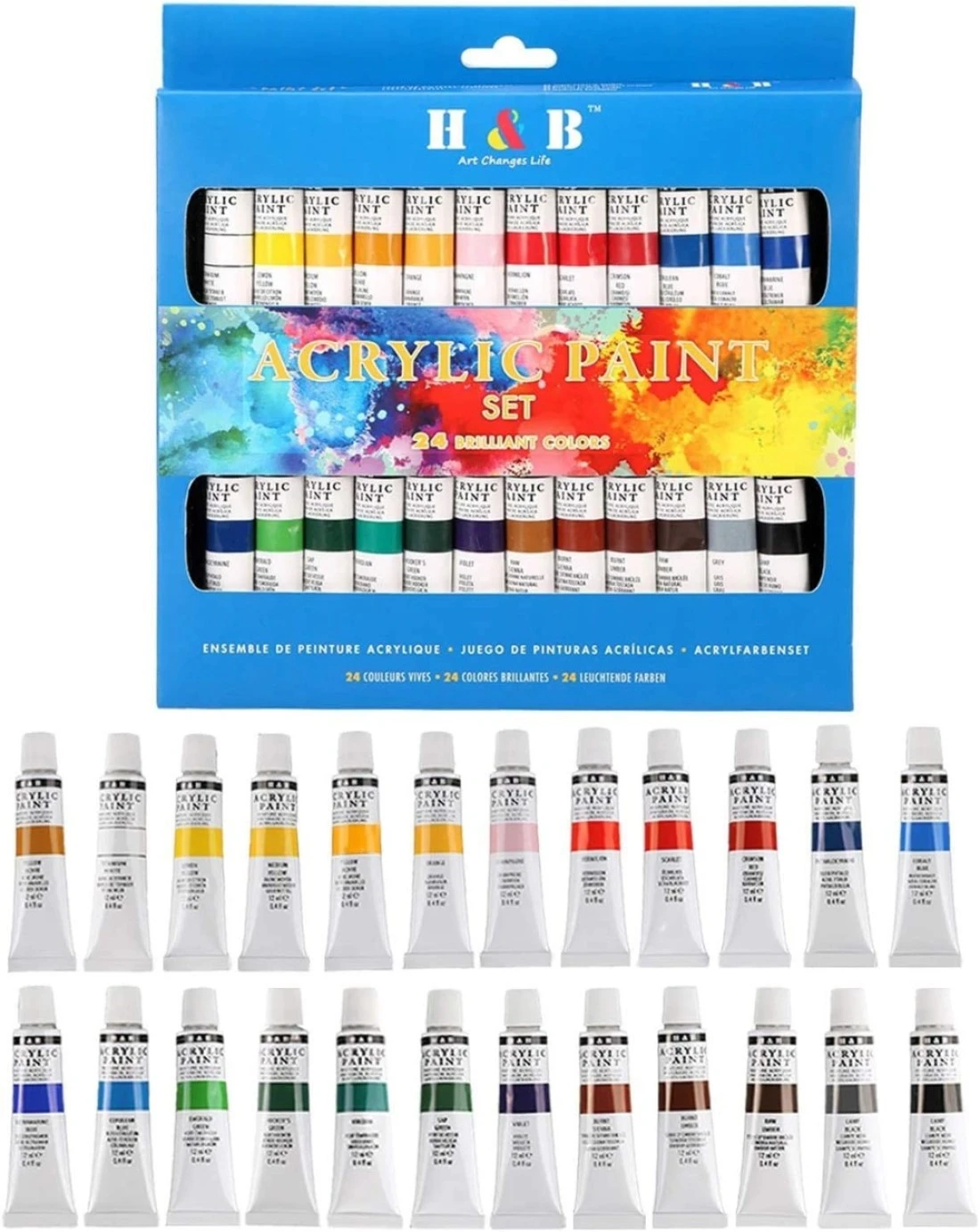 Acrylic Paints Set Water Color for Hand Painted Wall Painting 24 Pcs
