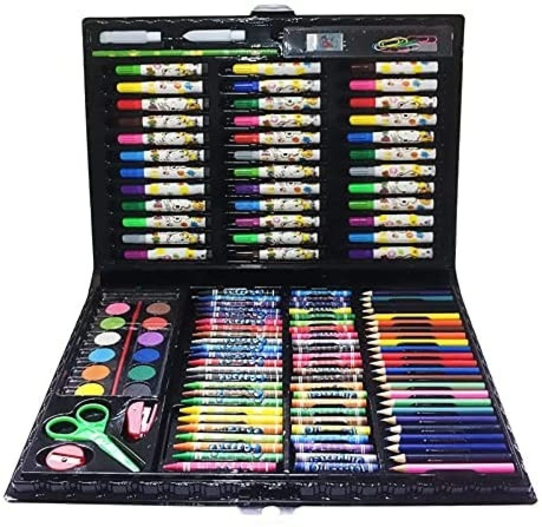 Generic Drawing Set, Art Set, 150 Pieces, Includes Drawing Wax, Crayons, Watercolour Pen, Paintng Oil Pastel And Accessories (Black)