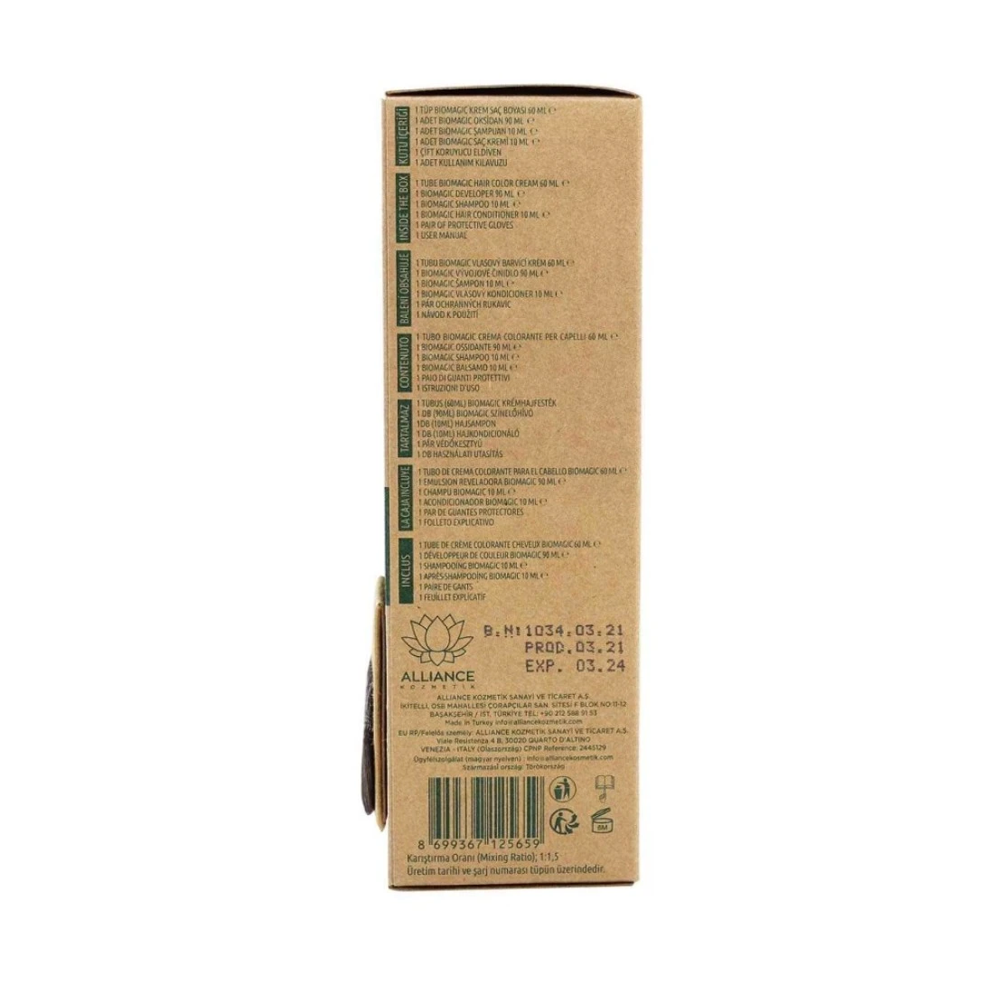 - التركيبة المعززة بالمواد البديلة المطورة حديثًا والموصوفة من قبل اللجنة العلمية للمفوضية الأوروبية لحماية المستهلك (SCCS) بدلاً من الأمونيا والريسورسينول ومادة بارا- فينيلين ديامين. كريم صبغة الشعر بيوماجيك طبيعية الشعر ويمنحه الحيوية واللمعان li>
