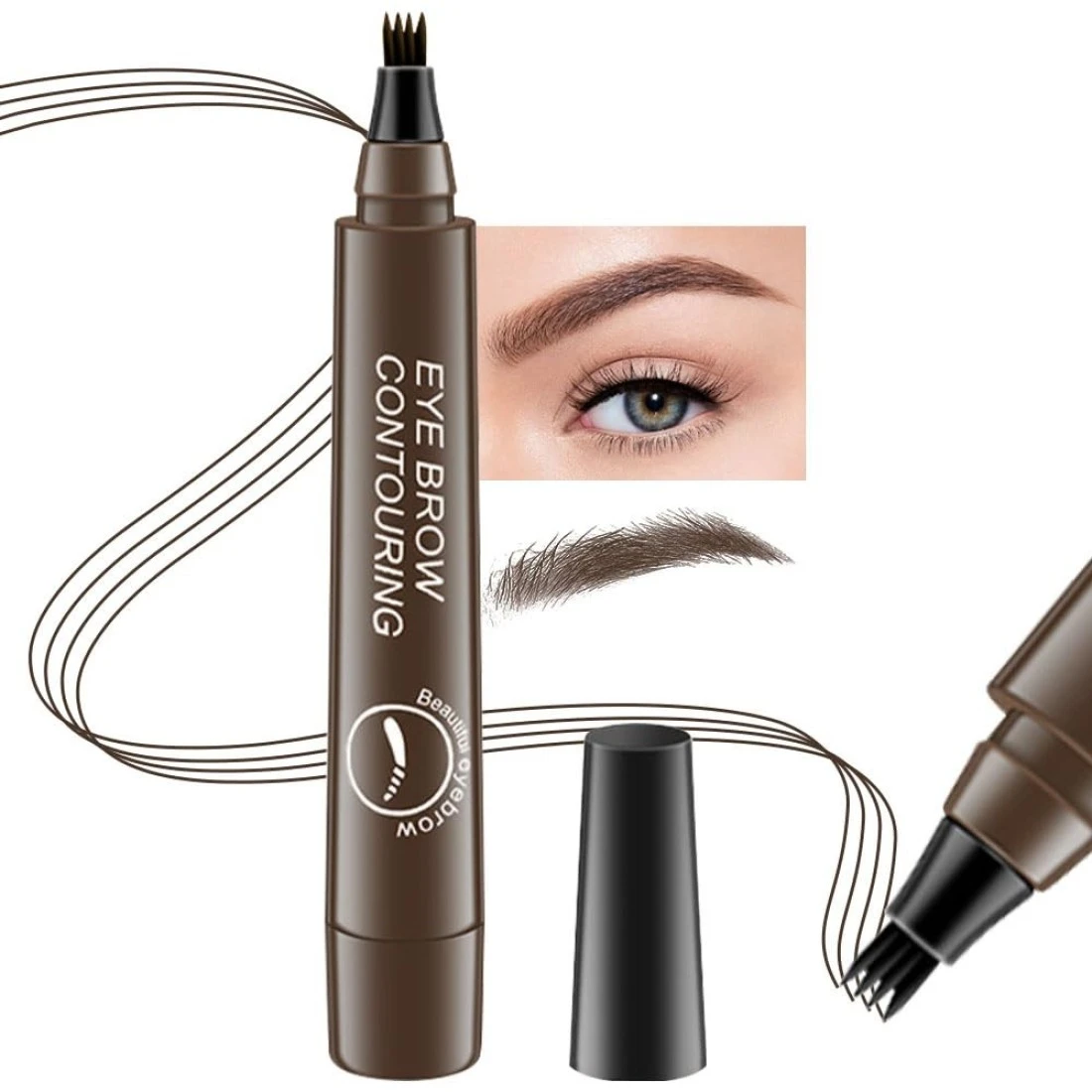 BINGBRUSH Eyebrow Pencil Micro 4 Point Ink Pen by Brow Stylist - Eye Makeup Lift & Snatch Eyebrow Pen Kits Long-Lasting Waterproof Natural Eyebrow Hair (1Pc 02# Dark brown)