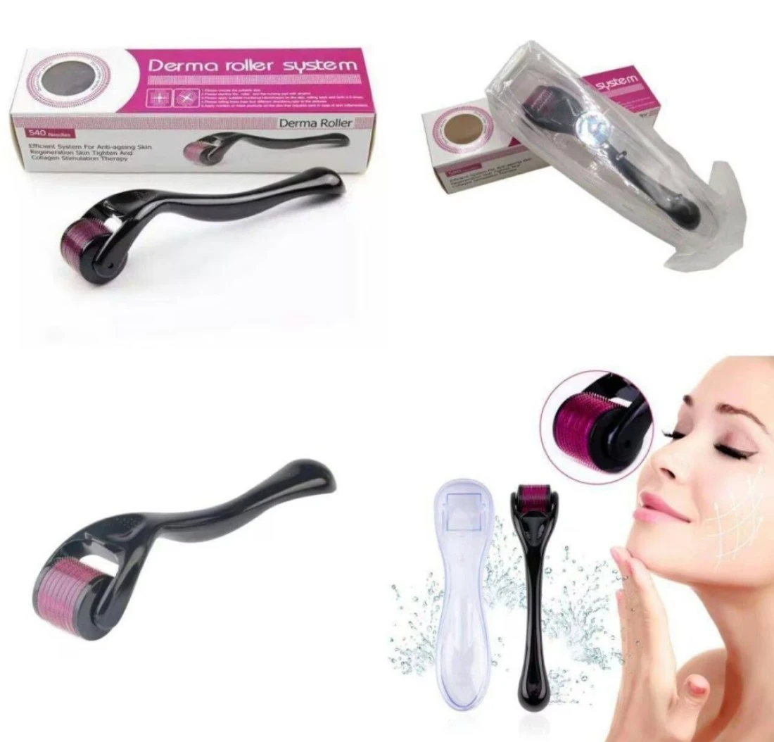 ديرما رولر لنمو الشعر وشد الجلد والعناية باللحية وندبات حب الشباب وعلامات التمدد أسطوانة الوخز بالإبر الدقيقة للوجه وفروة الرأس واللحية أداة سهلة الاستخدام للعناية بالبشرة