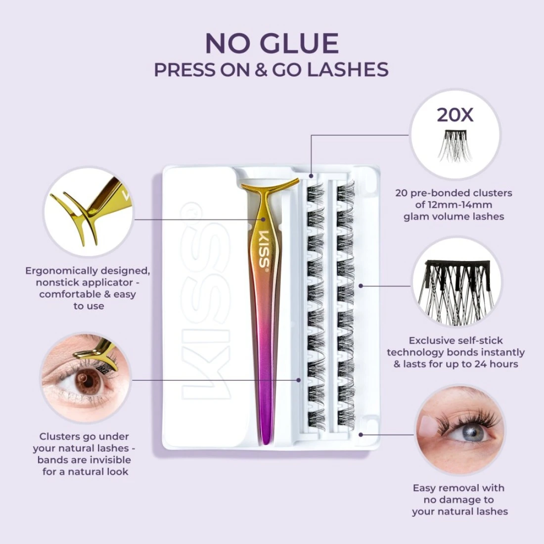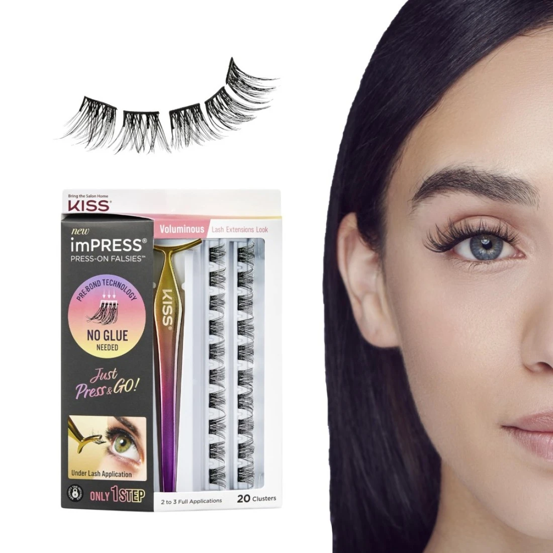KISS imPRESS Falsies False Eyelashes Lash Clusters Voluminous 14 mm Includes 20 Clusters 1 applicator Contact Lens Friendly Easy to Apply Reusable Strip Lashes