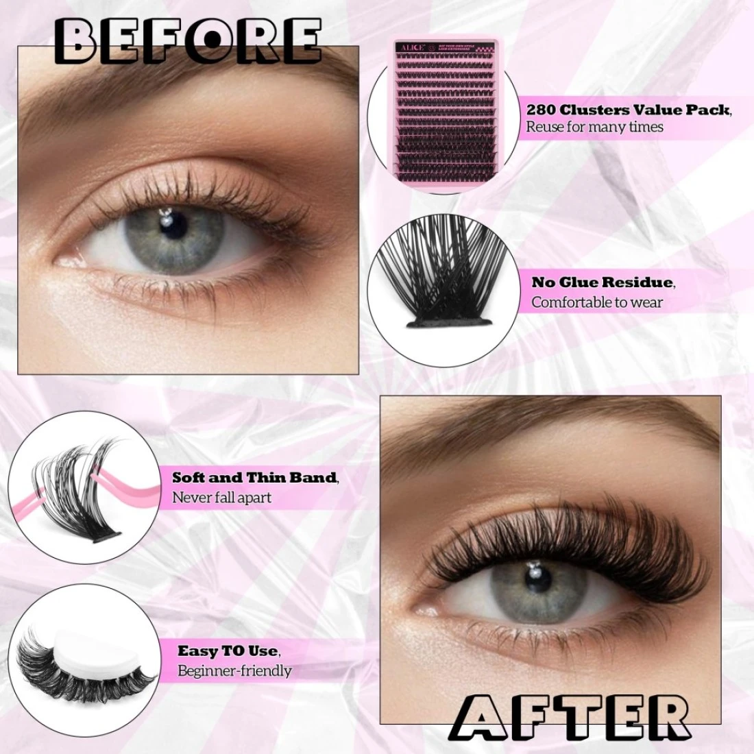 DIY Eyelash Extension Kit D Curl Fluffy Wispy Lash Clusters Individual Lashes Lash Extension Kit with Lash Bond and Seal Applicator Tool for Self Application at Home 80P280PcsMix1016mm007D