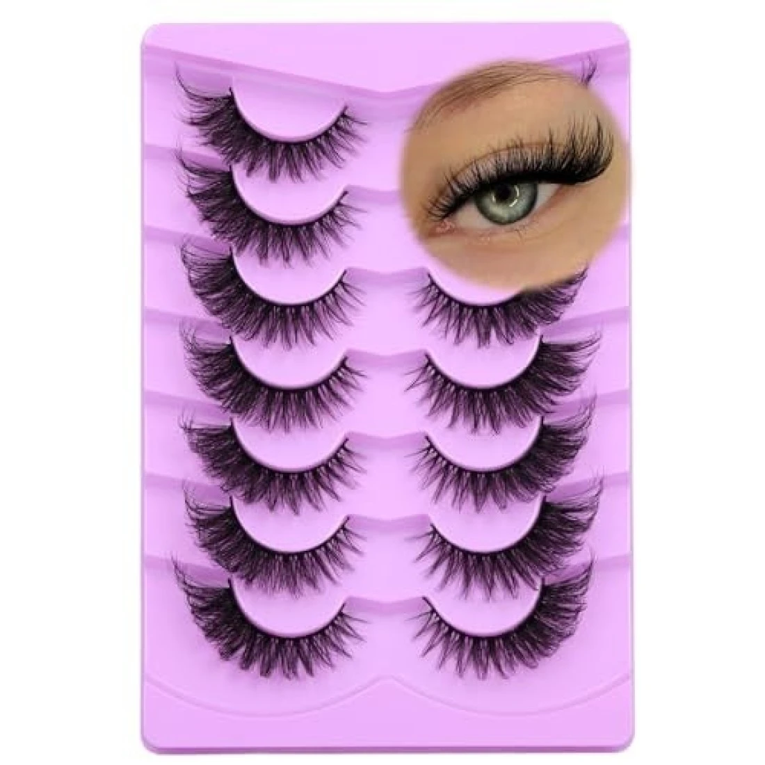 ALICE Eyelashes Fox Eye Lashes Mink Faux Fluffy Natural False Eyelashes Wispy Cat Eye Lashes Pack Fake Eyelashes 7 Pairs
