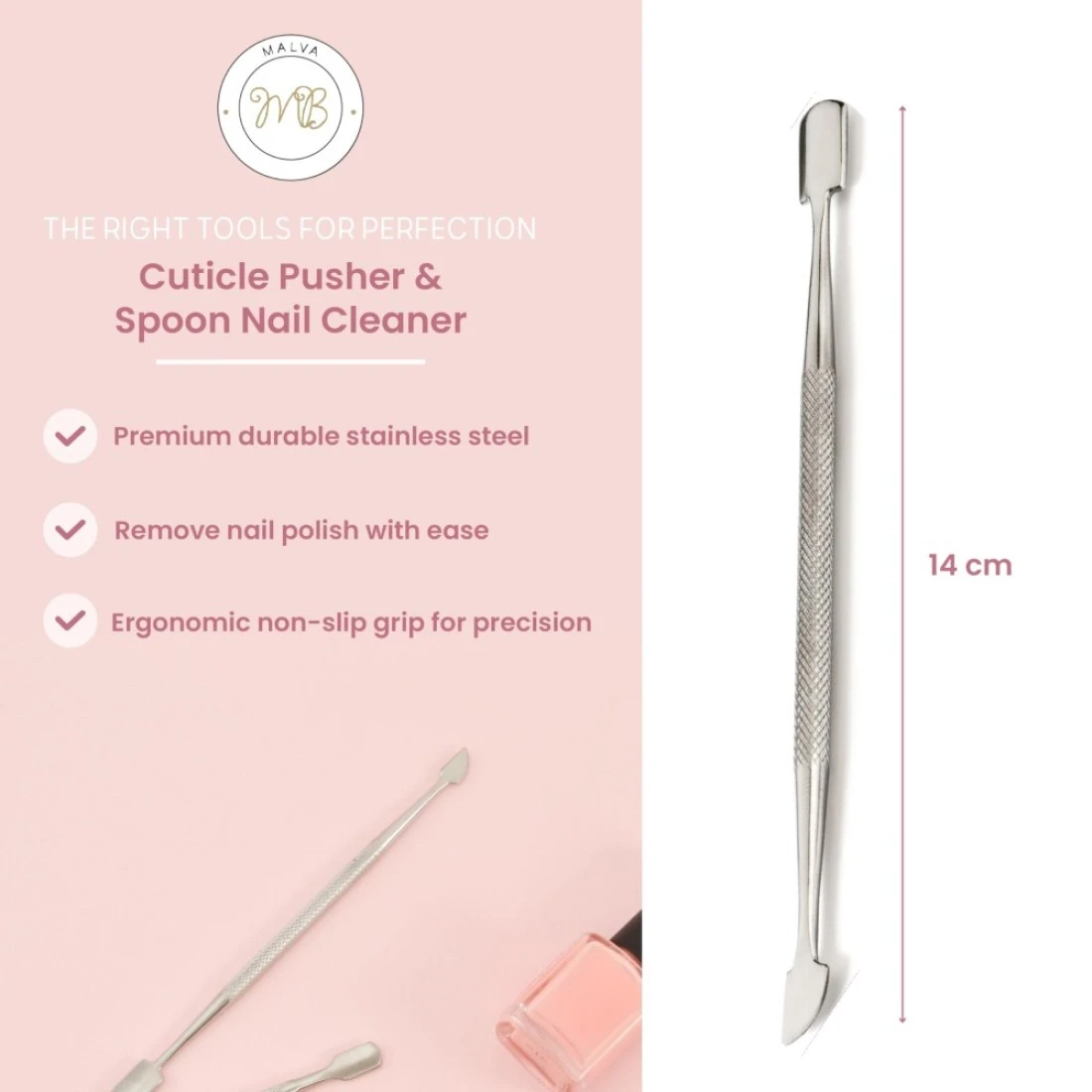 Malva Belle Cuticle Pusher Spoon Nail Cleaner Cuticle Remover Under Nail Cleaner Tool Stainless Steel Cuticle Pusher Tool Nail Cleaner For Women Cuticle Care Kit