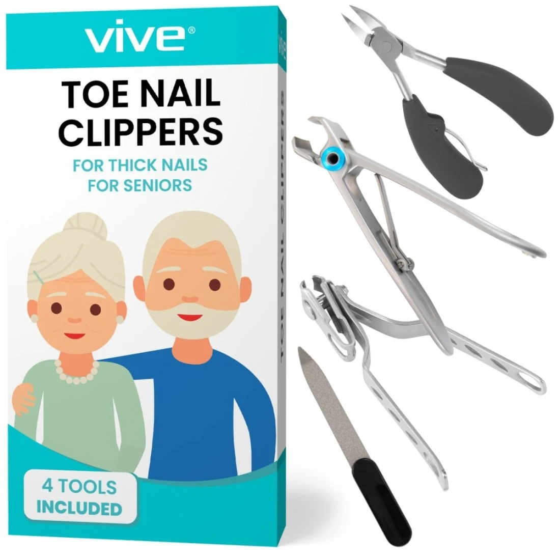 Vive Senior Toenail Clippers for Thick Nails Heavy Duty Podiatrist Trimmers for Elderly Adults Fingernail Care Set for Hands Toes Arthritis Diabetics Hand Pain Professional Sharp Clippers