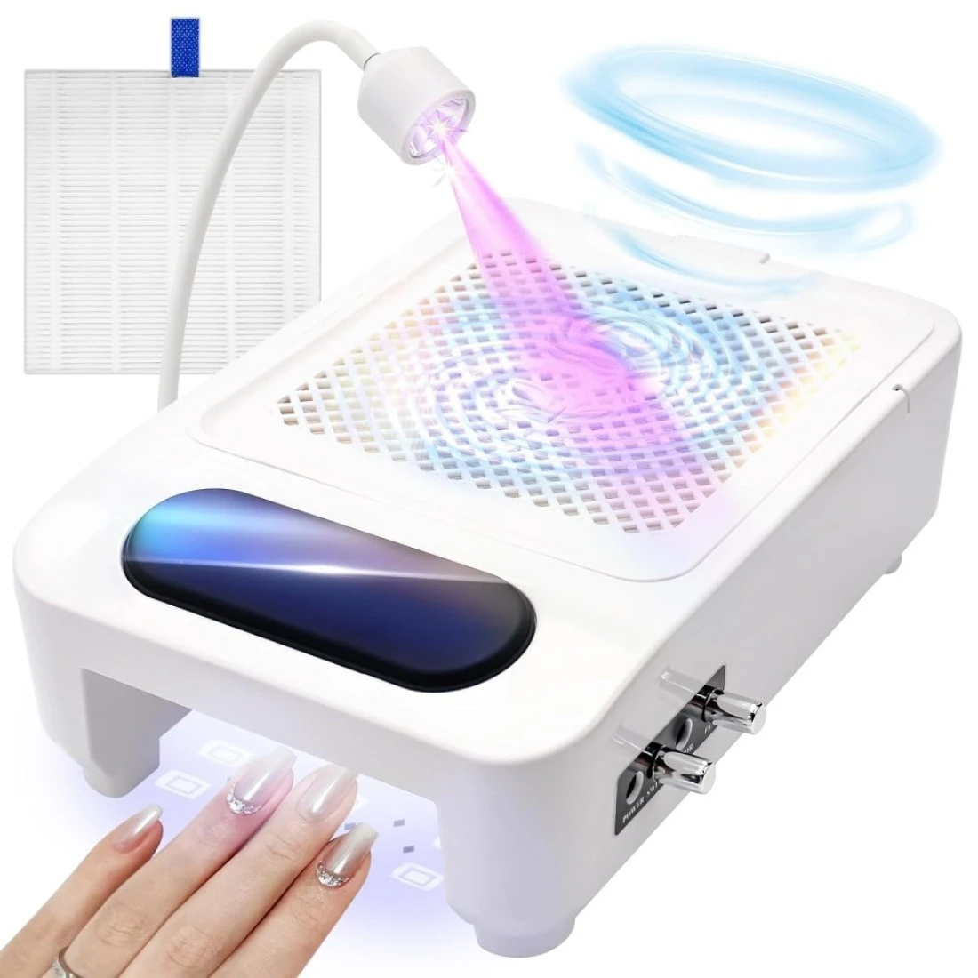 Nail Dust Collector- 4 in 1 Nail Dust Collector for Acrylic Nails- Nail Drill 35000 RPM -Dust Collector -with Baking Lamp and Nail Lamp-GLHDDL-Suitable for Nail Salon and Home DIY (3 in 1)