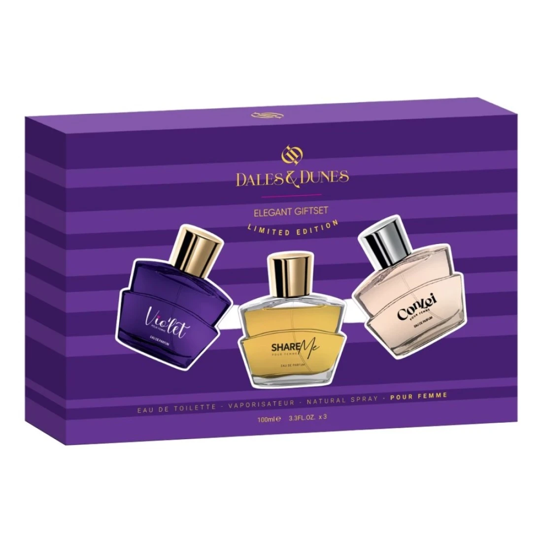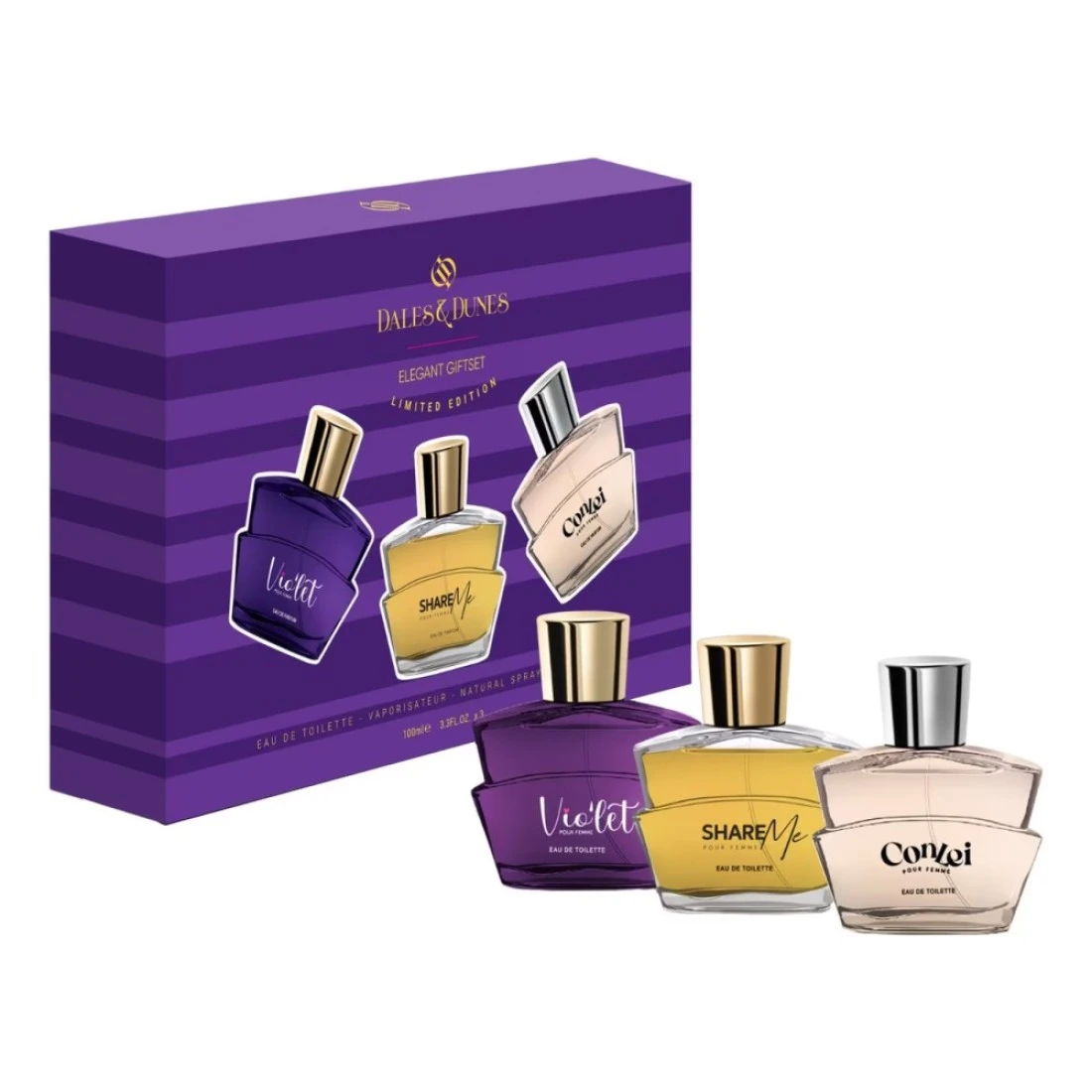 ديلز آند ديونز إليجانت جيفت سيت إصدار محدود فيوليت شير مي كونلي ماء تواليت للنساء 100 ملل حزمة من 3