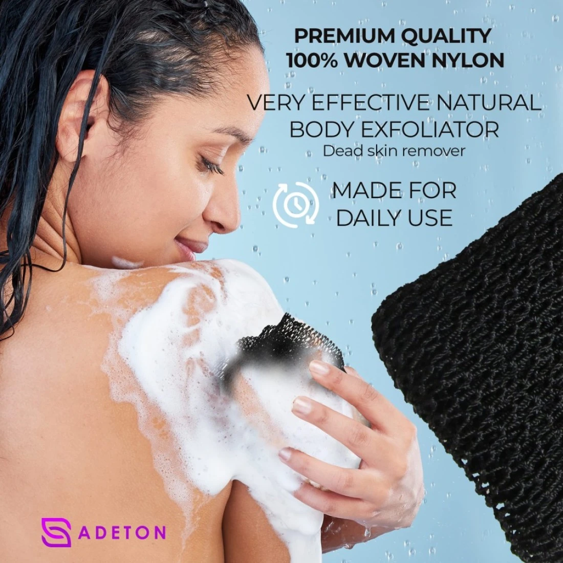 Adeton African Net Sponge Authentic Real Black Owned Exfoliating Bath Wash Cloth Long Sponge Body Exfoliator Sapo Shower Bath Accessories Back Foot Scalp Scrub Flat Dead Skin Remover Black