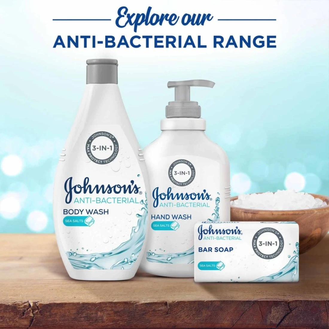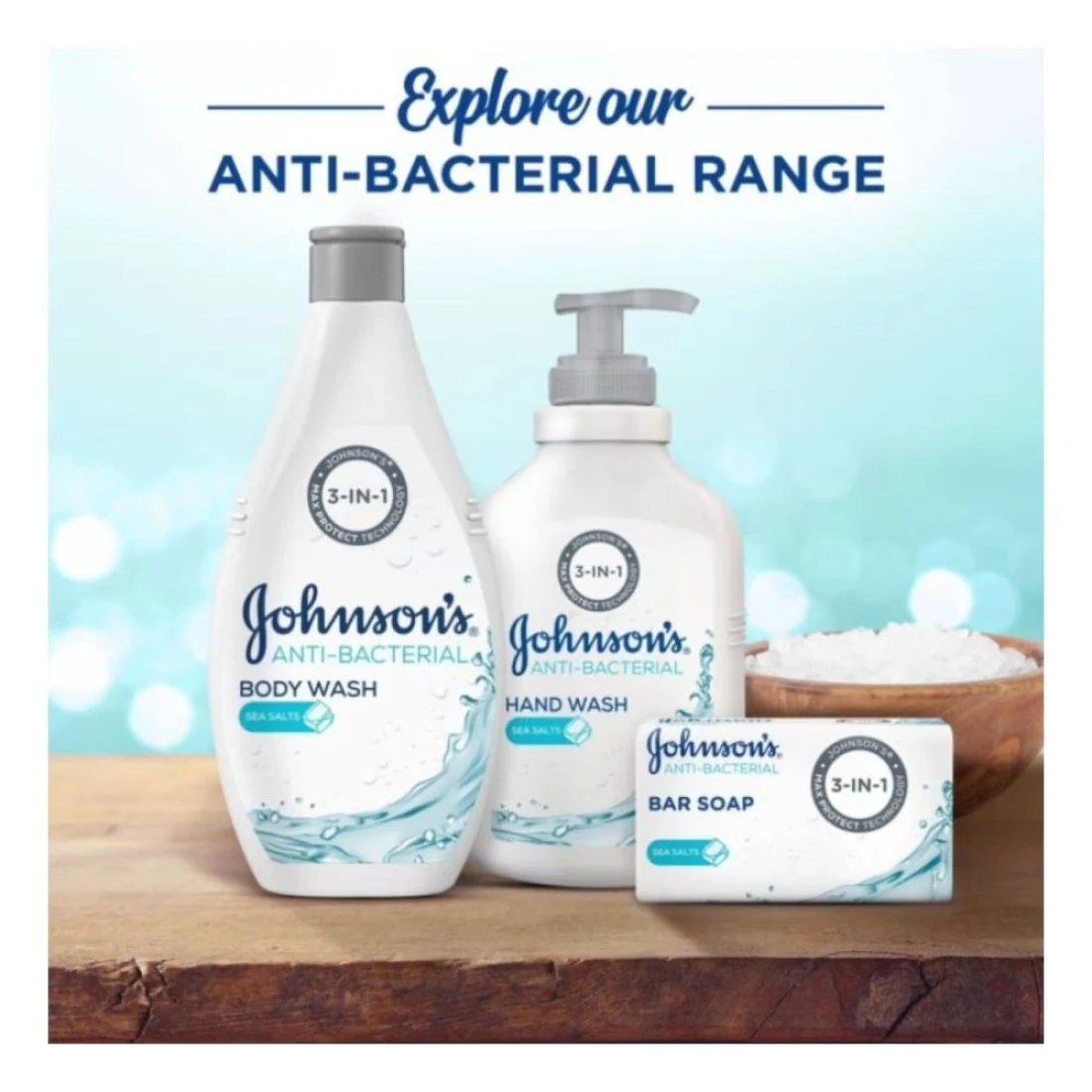 يتميز سائل الاستحمام جونسون المضاد للبكتيريا بملح البحر بتركيبته التي تجمع بين تكنولوجيا إزالة الجراثيم ماكس بروتكت والجليسرين النقي – سائل ترطيب مستخلص من مصادر طبيعية 100%، لتنظيف بشرتك بفعالية ورفق وإبقائها ناعمة وصحيّة.يتميز سائل الاستحمام جونسون المضاد للبكتيريا الغني بملح البحر المنشط بتركيبته 3 في 1 التي تنظّف 99.9% من الجراثيم والأوساخ والعرق وتحافظ على الترطيب الطبيعي لبشرتك، فتمنحها رائحة منعشة وعطرة. هذا السائل لطيف جدًّا على البشرة لدرجة أنه يمكن استخدامه على منطقة الوجه. كما ويمنح البشرة نظافة مثالية حتى مع استخدام الماء البارد.حافظي على انتعاش ونظافة وترطيب بشرتك من خلال استخدام سائل استحمام جونسون المضاد للبكتيريا بملح البحر!