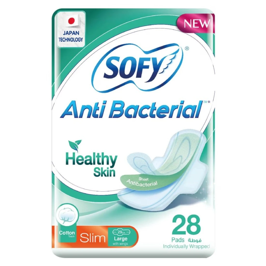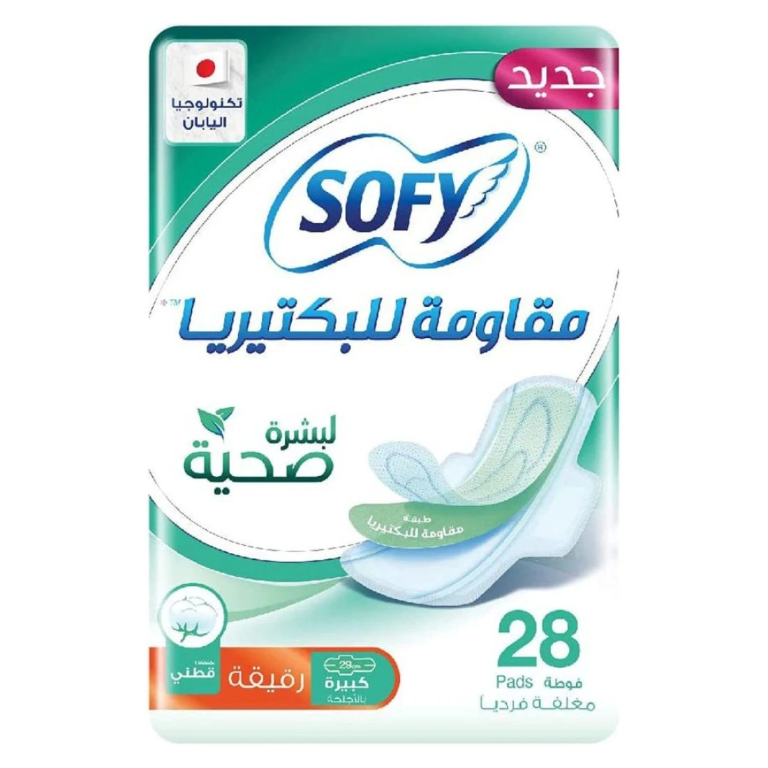 صوفي فوط صحية أصلية رفيعة ومضادة للبكتيريا بأجنحة كبيرة -أبيض- 28 فوطة