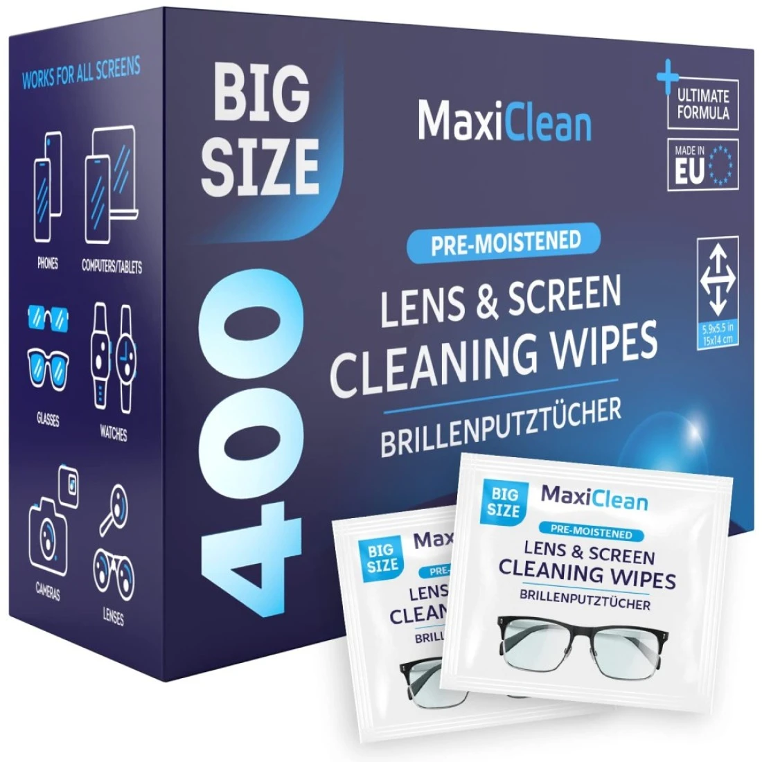 Glasses Wipes Lens Cleaner Lens Wipes for Eyeglasses 400 Premoistened Individually Wrapped Wipes for Eye Glasses Electronics Phone Computer Laptop Screen Camera Lens Cleaner Made in EU