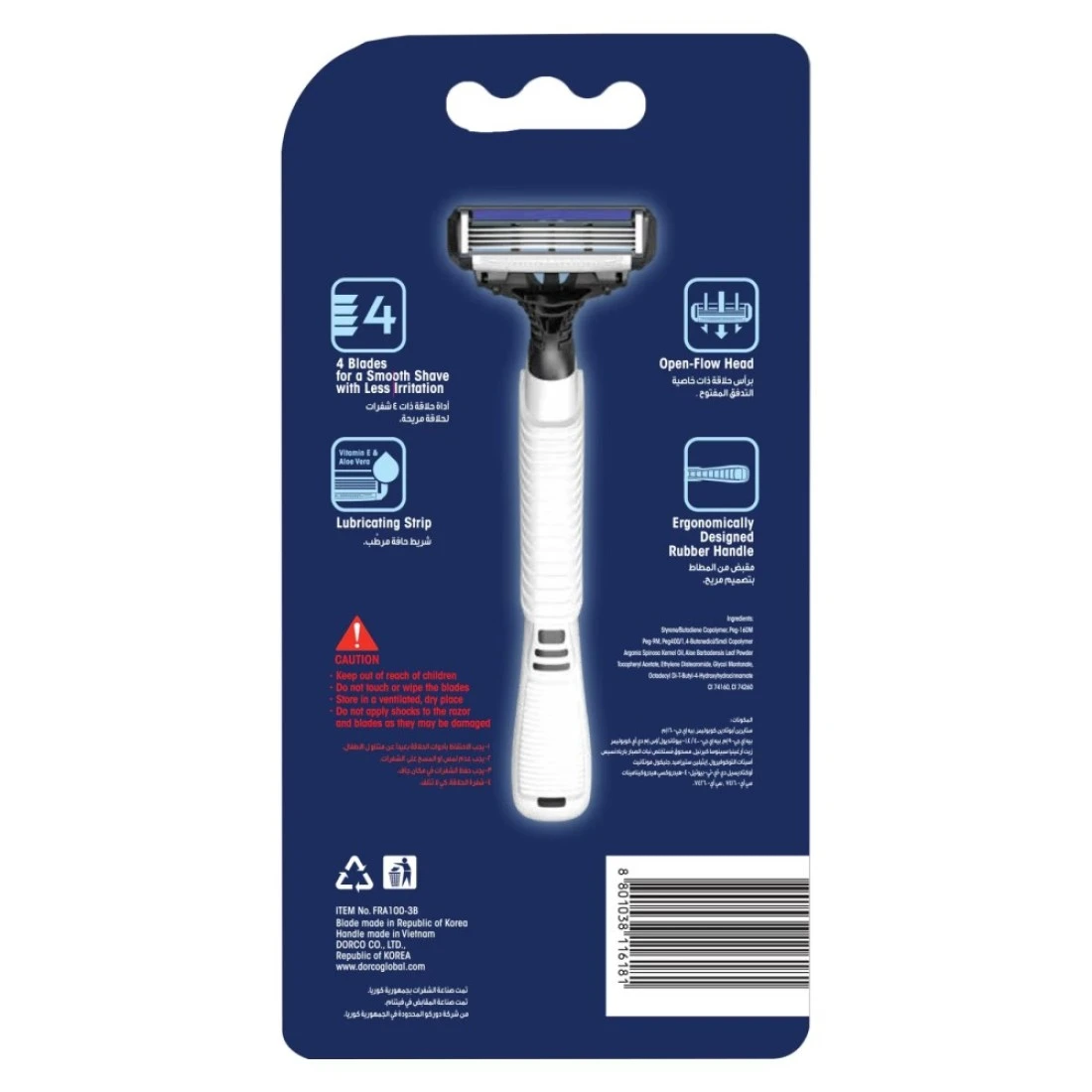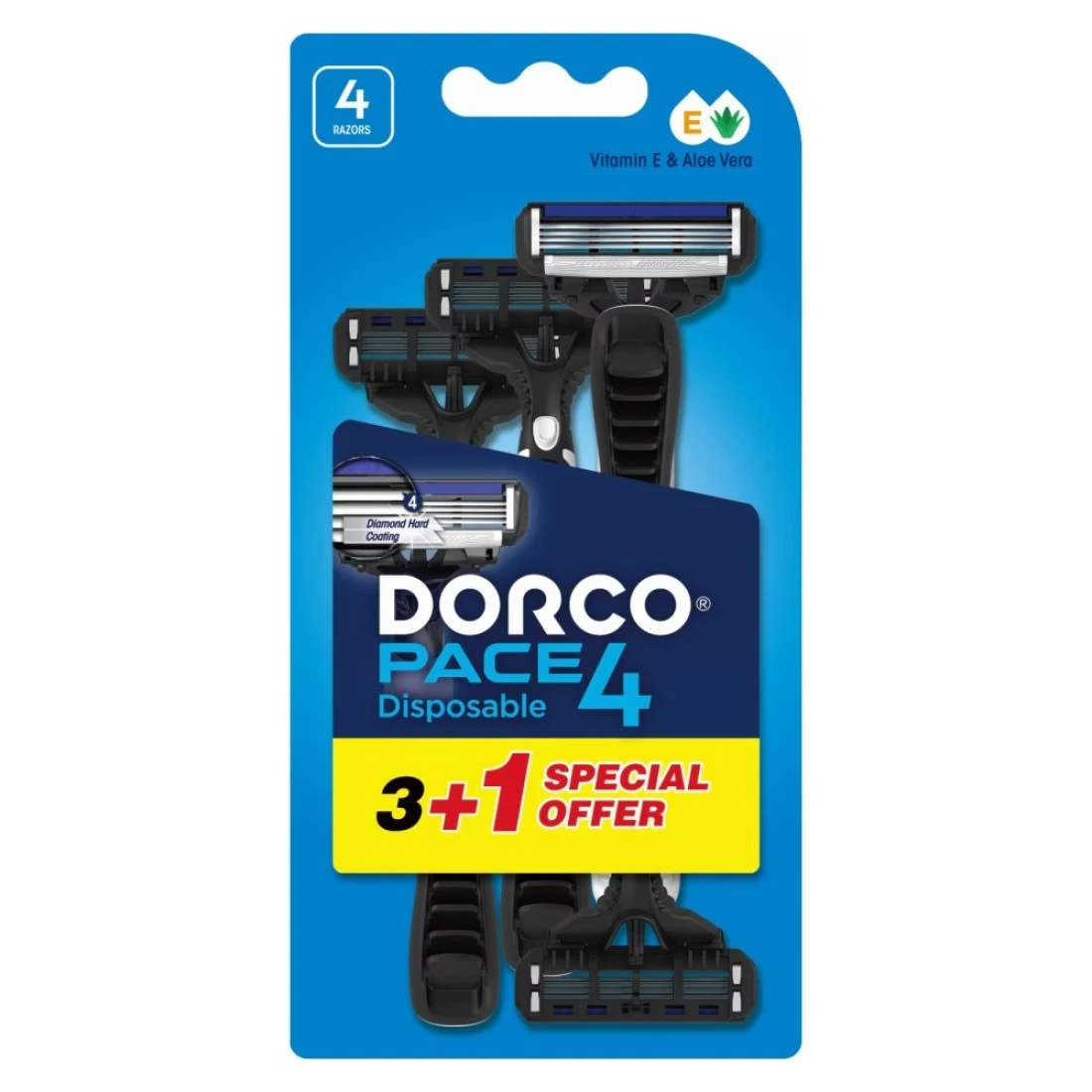 دوركو بيس4 ماكينة حلاقة رجالية قابلة للإستعمال مرة واحدة تحتوي على 4 شفرات.