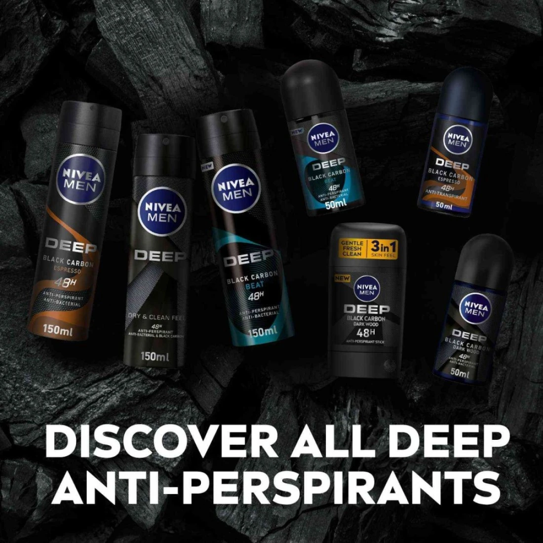 مزيل للعرق للرجال، ديب من نيڤيا، يتكون من تركيبة فريدة تعمل على التخلص من العرق ورائحة الجسم، وتترك البشرة جافة ونظيفة. صنعت هذه التركيبة لتكون مضادة للبكتيريا مع الكربون الأسود، فمزيل العرق للرجال ديب من نيڤيا يمنح حماية مضادة للتعرق تدوم 48 ساعة، ويتخلص من البكتيريا للحصول على جفاف يدوم طويلًا مع شعور بالنظافة بعد الاستحمام. نيڤيا للرجال، تبدأ معك!