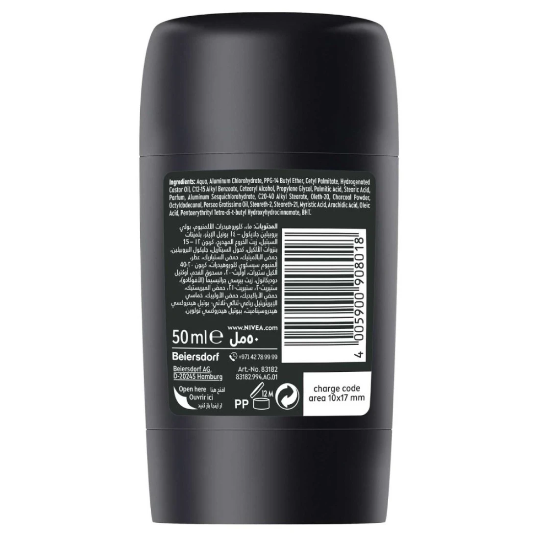 ingredients : أكوا ، كلوروهيدرات الألومنيوم ، عطر ، زيت بيرسيا غراتيسيما ، مسحوق فحم.