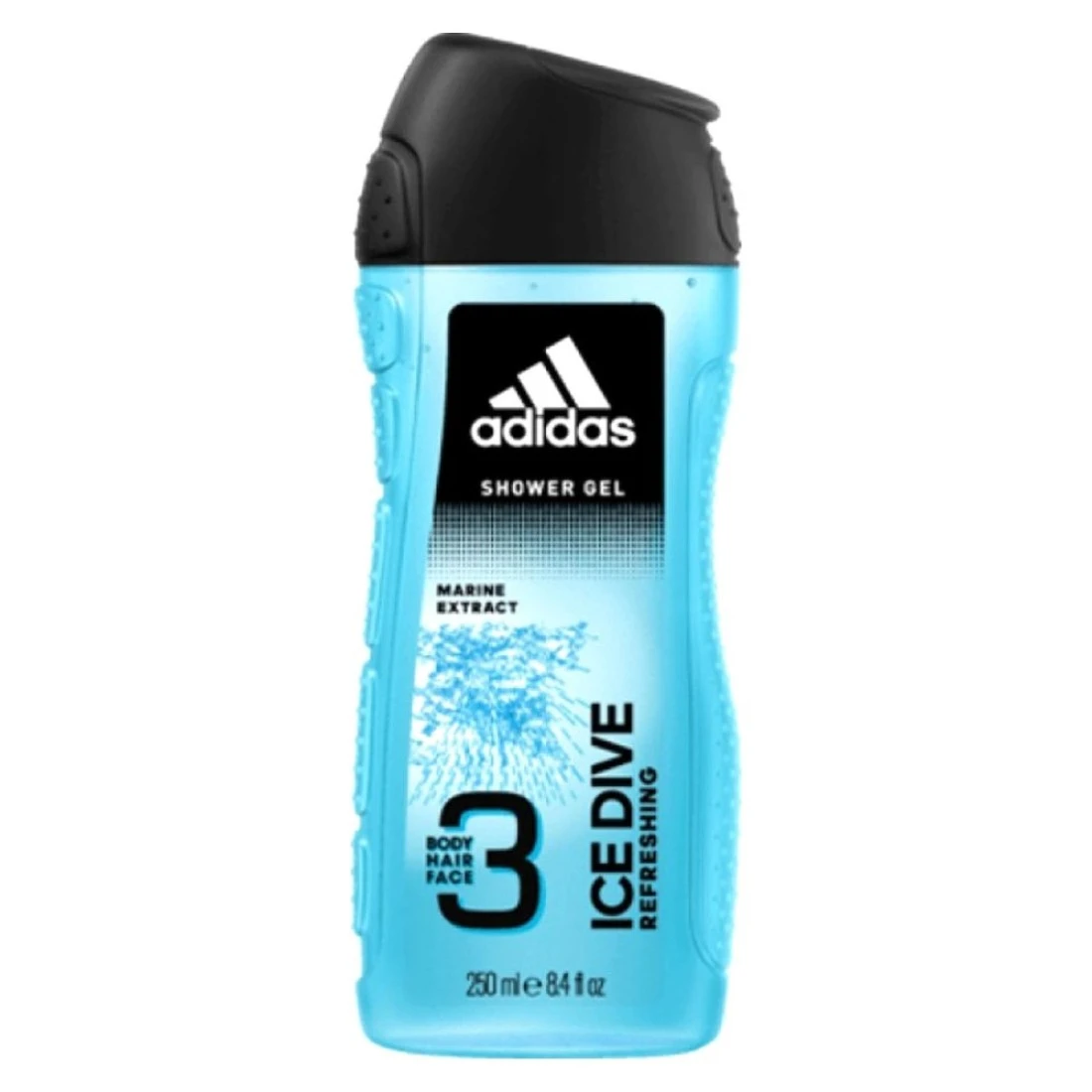 - يجمع جل الإستحمام من أديداس آيس دايف بين تركيبة تنظيف شعر الجسم والوجه 3 في 1 مع رائحة الأوزون المنعشة التي تلتقط الأحاسيس المثيرة للرياضات مثل ركوب الأمواج أو التزلج على الجليد.