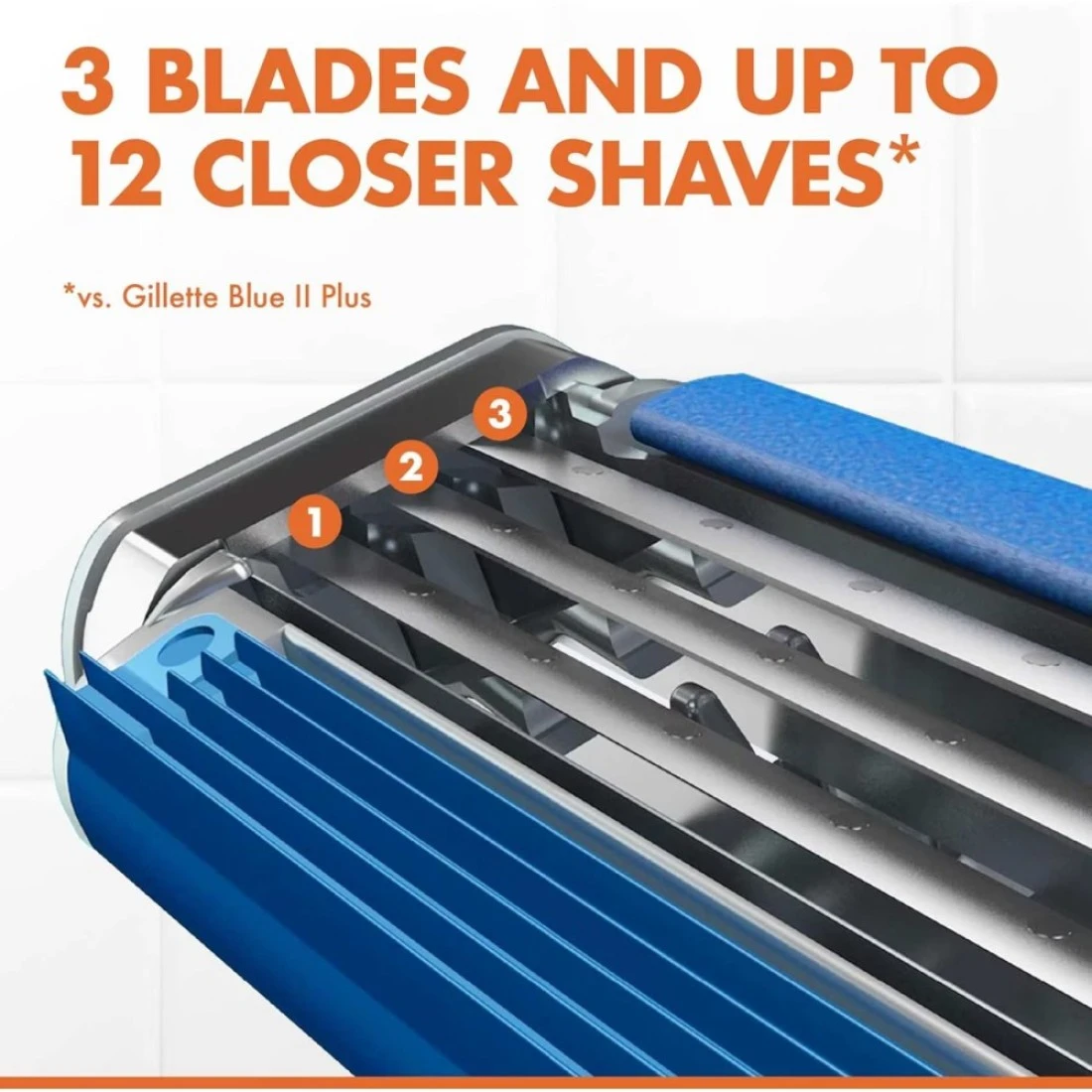 - توفر ماكينة الحلاقة المريحة للإستعمال مرة واحدة فقط من جيليت بلو 3 للرجال حلاقة أكثر نعومة وشطفا أفضل بنسبة 100٪ (مقارنة مع بلو II)