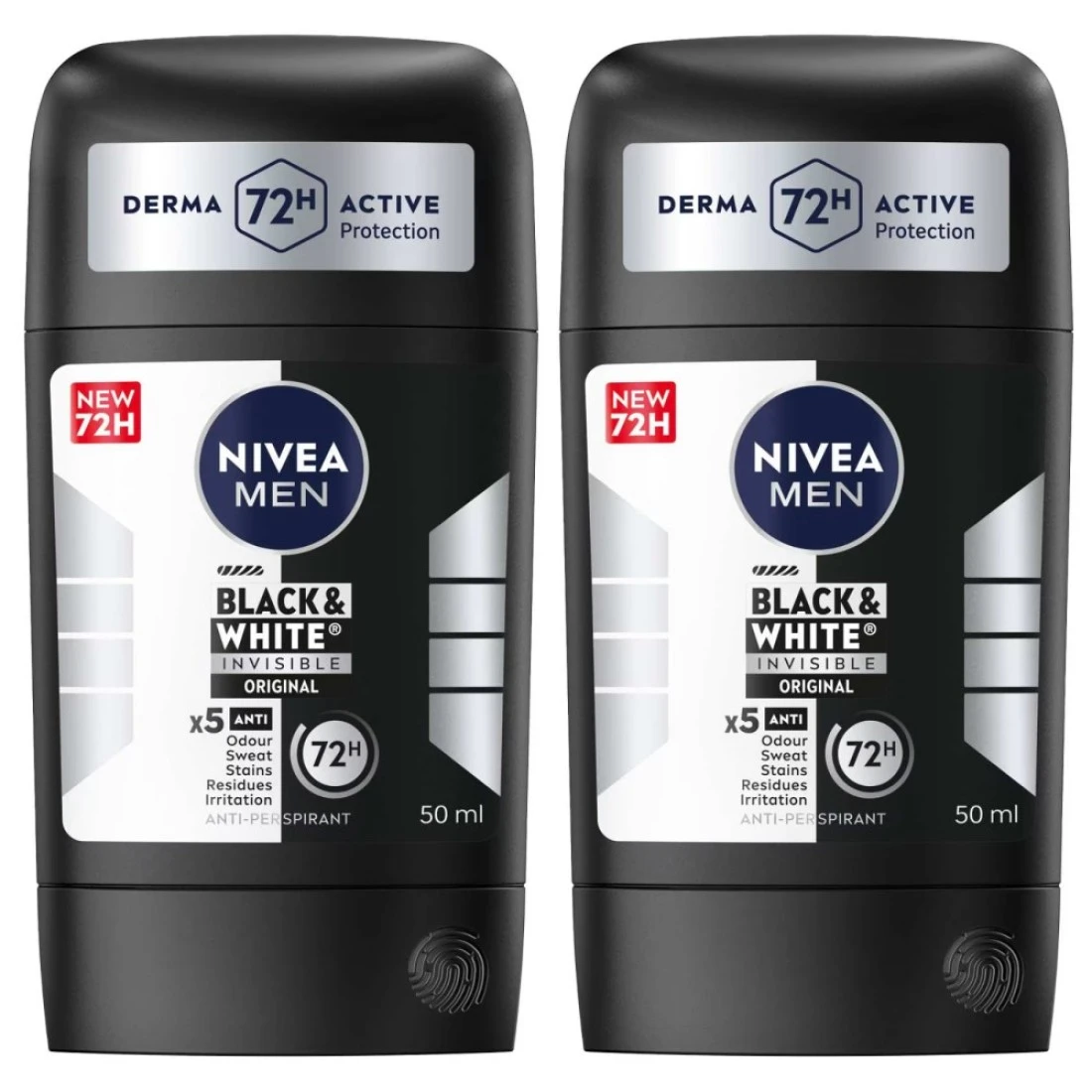 ستيك بلاك آند وايت إنفيزيبل مضاد للتعرق للرجال من نيڤيا، أوريجينال، ٧٢ ساعة من الحماية الفعّالة، ٥٠ مل، حزمة من ٢