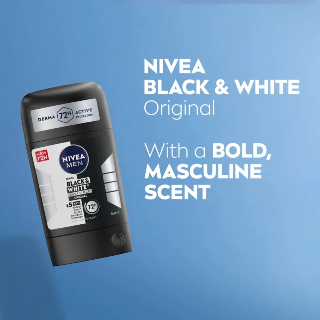 - تركيبة ٥ في ١ لطيفة على البشرة: يتمتّع الستيك المزيل للعرق من نيڤيا بلاك آند وايت إنفيزيبل أوريجينال بـ٥ منافع في عبوة ١. فهو مضاد للروائح، وللعرق، وللبقع، وللرواسب، ولا يتسبب بالتهاب البشرة ولا يجعلك تشعر بالإنزعاج.