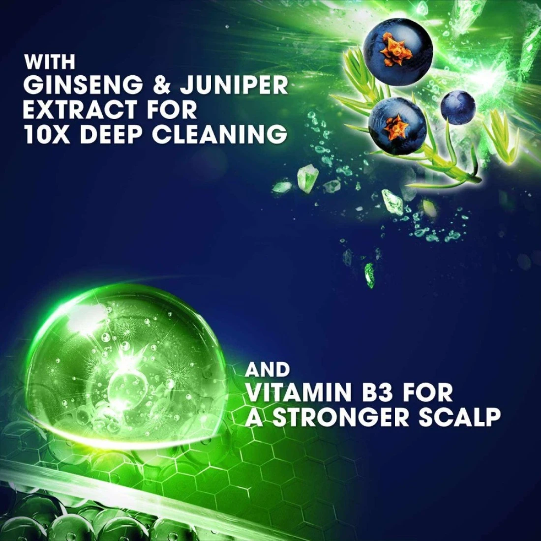 - شعر خالٍ من ١٠٠٪ بدون قشرة^ وفروة رأس مغذاة: تركيبة مضادة للقشرة المثبتة سريريًا، غنية بفيتامين بي٣ ومستخلصات الجينسنغ والعرعر.