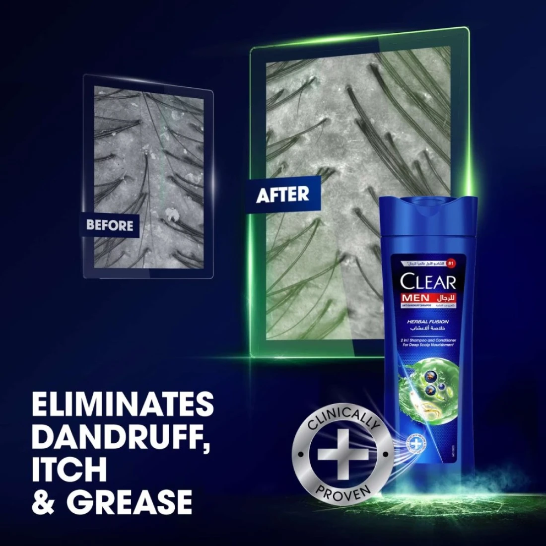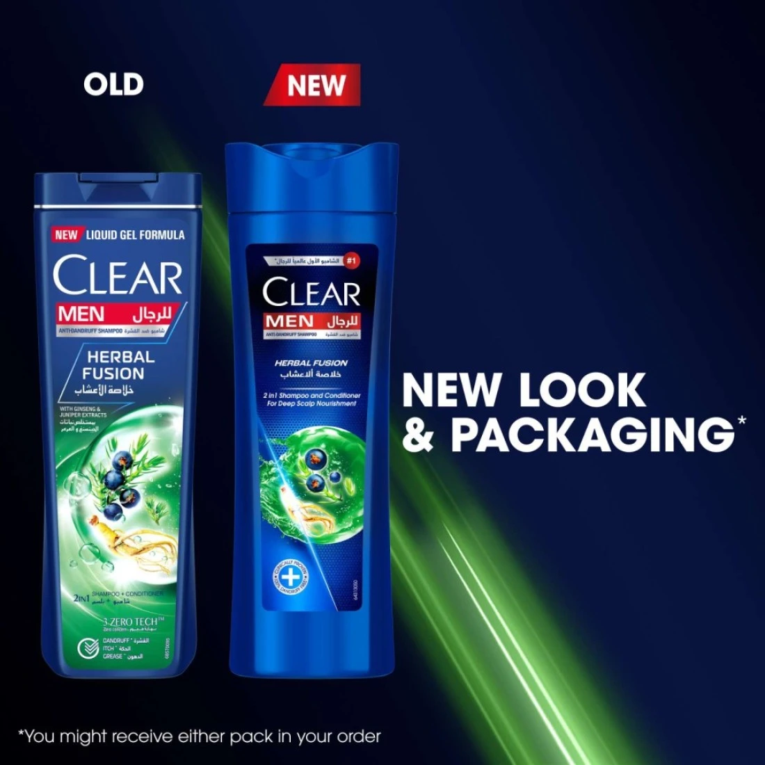 - شكل وعبوة جديدة: شامبو وبلسم كلير للرجال ٢ في ١ المضاد للقشرة، هيربال إنفيوجن.