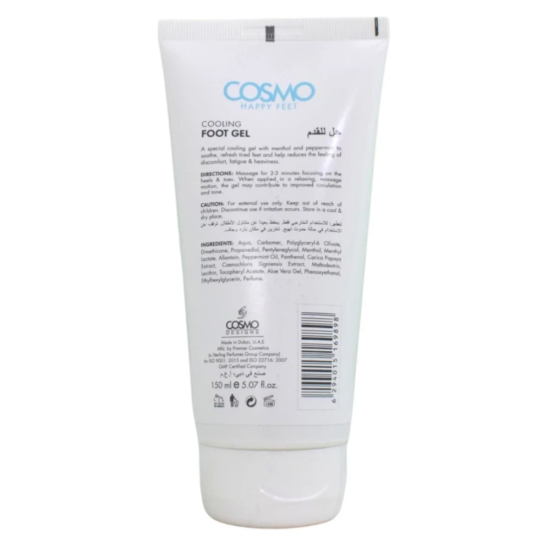 جل تبريد القدمين كوزمو هابي فيت هو جل منعش ومجدد للقدم يوفر راحة فورية للأقدام المتعبة والمؤلمة. غني بإحساس التبريد بالنعناع، هذا الجل يهدئ البشرة ويبردها ويترك قدميك تشعر بالانتعاش والنشاط. تركيبة خفيفة الوزن تمتص بسرعة ولا تترك أي بقايا لزجة مما يجعلها مثالية للاستخدام اليومي. قل وداعًا للأقدام المتعبة ومرحبًا بأقدام سعيدة مع جل القدم المنعش من كوزمو هابي فيت.