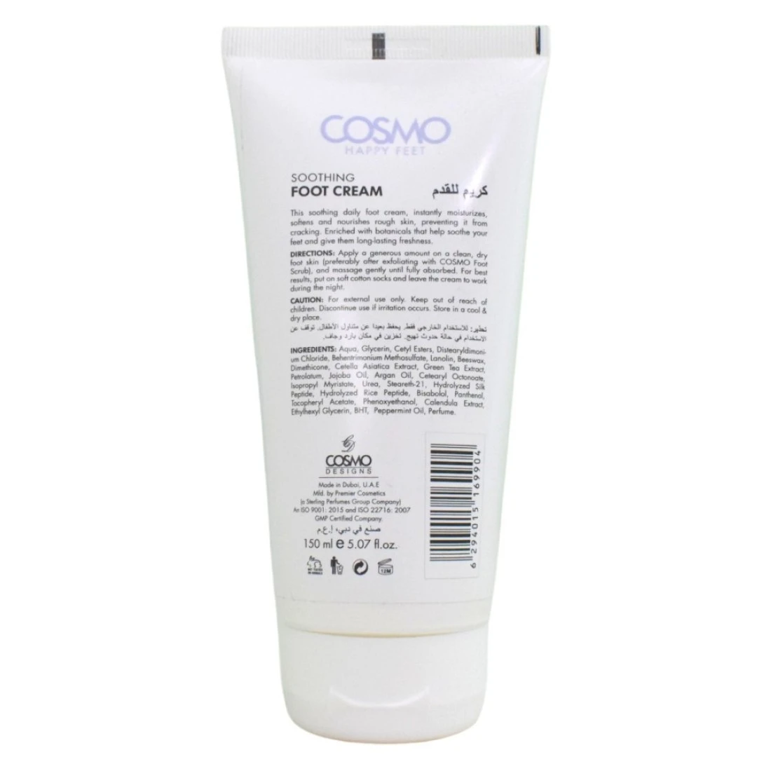 كريم كوزمو هابي فيت المهدئ للقدمين هو كريم فاخر ومغذي تم تصميمه خصيصًا لتهدئة وترطيب الأقدام المتعبة والجافة. غني بفيتامين E واليوريا ويساعد على تنعيم وترطيب البشرة مما يترك قدميك تشعر بالانتعاش والتجدد. يتميز الكريم بقوام خفيف الوزن وغير دهني مما يجعل من السهل تطبيقه وامتصاصه على الجلد. مثالي للاستخدام اليومي، كريم القدم هذا سيبقي قدميك ناعمة وسعيدة.