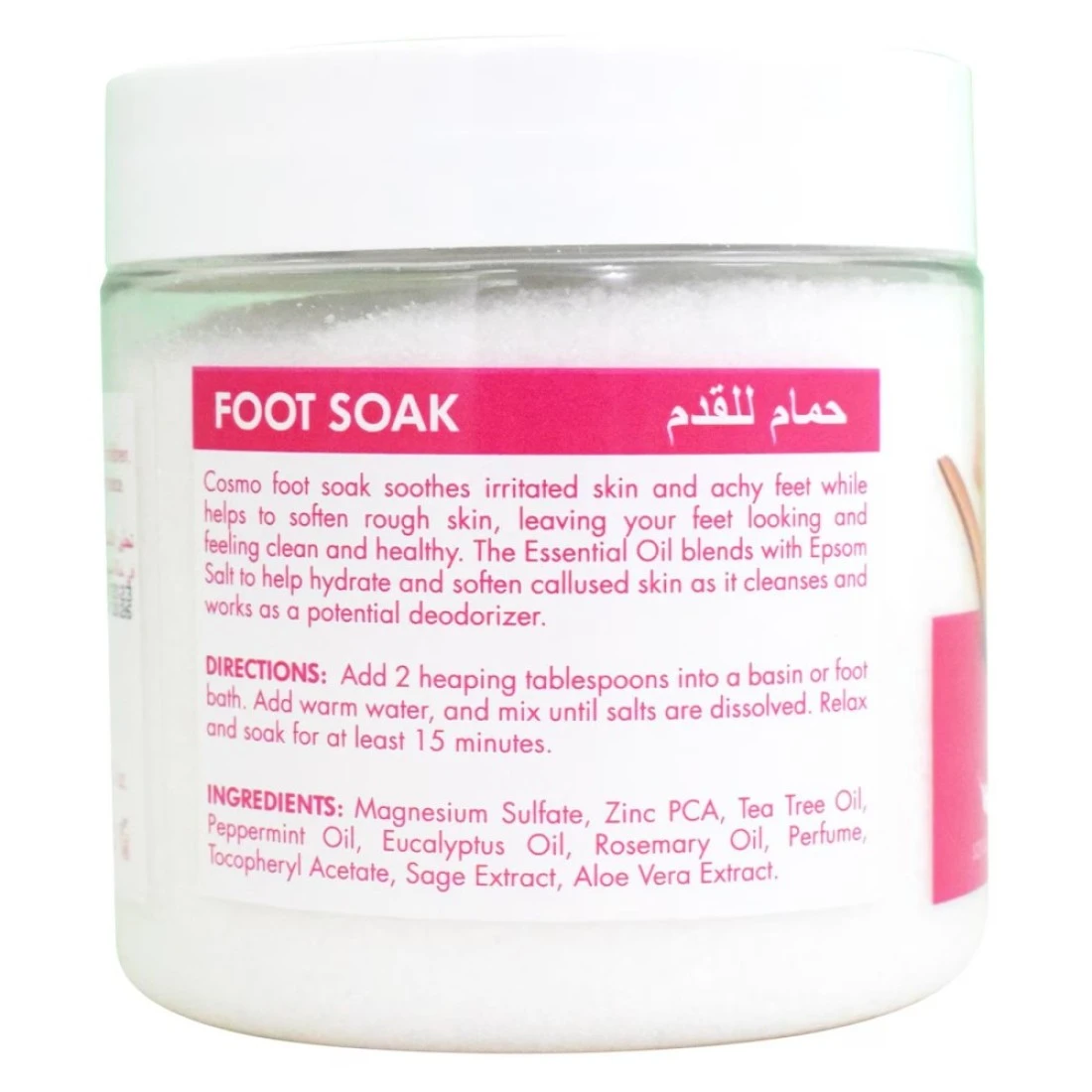 - يعمل منقوع القدم كوزمو على تلطيف البشرة المتهيجة والأقدام المؤلمة بينما يساعد على تنعيم الجلد الخشن مما يترك قدميك بمظهر وشعور نظيفين وصحيين