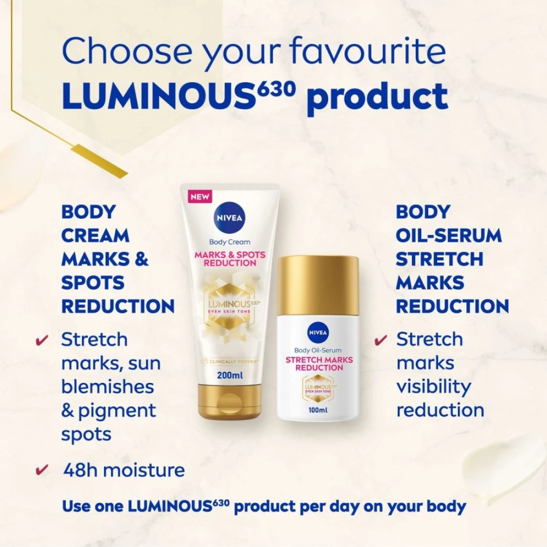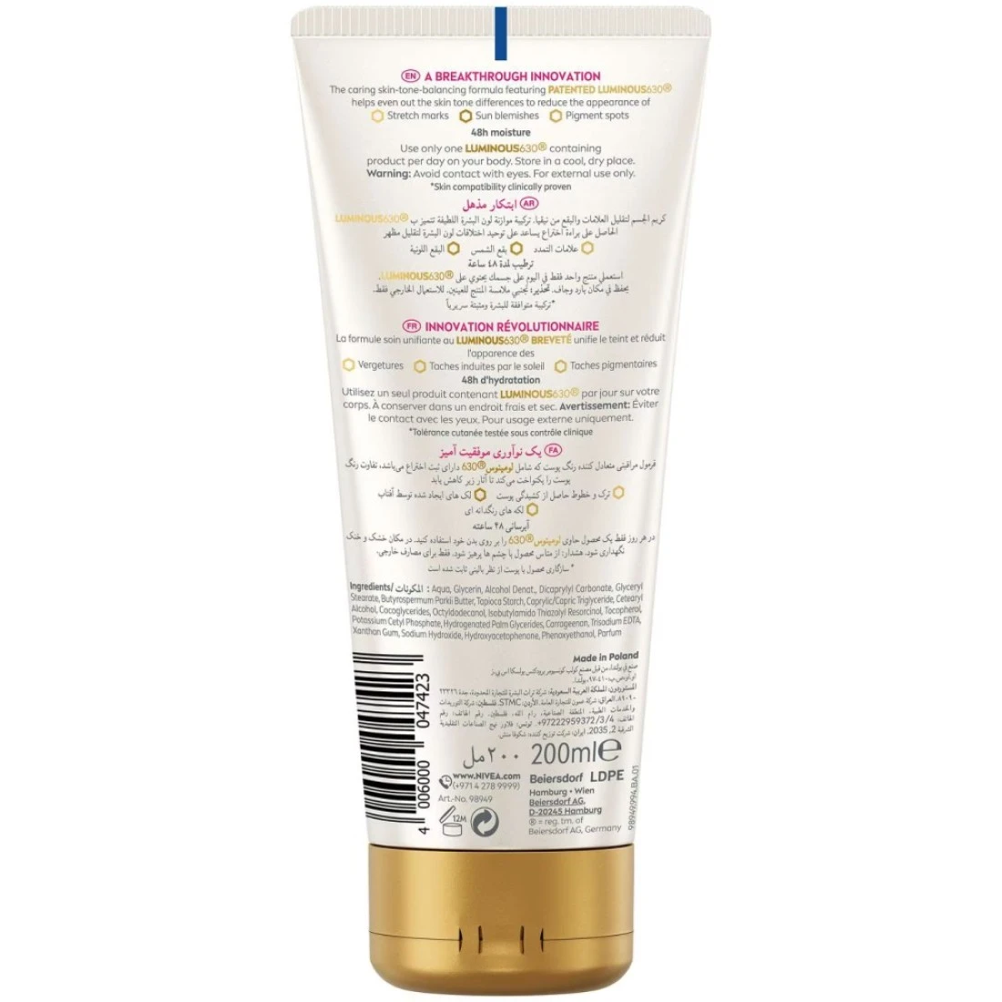 نيفيا لوميـنوس 630 كريم الجسم لتوحيد لون البشرة وتقليل البقع والآثار، 200 ملل، حزمة من 2