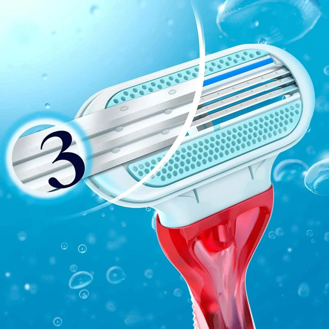 - تتميز ماكينات الحلاقة ذات الثلاث شفرات هذه أيضًا بشرائط غنية بالرطوبة مع لمسة من الصبار لسهولة الانزلاق ووسادة واقية ناعمة تحمي من الشقوق والجروح