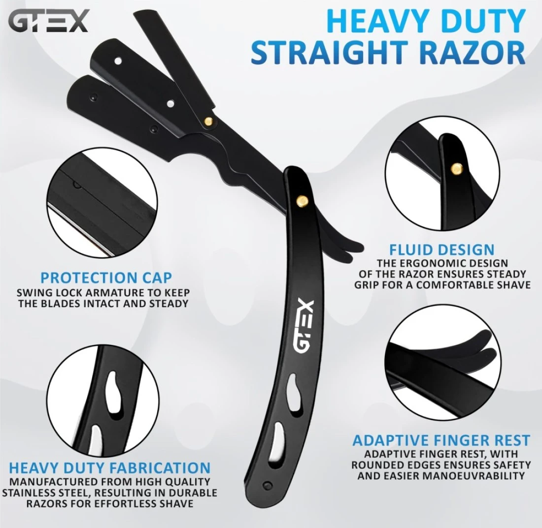 Straight Razors For Men 100 GTEX Barber Razor Blades 2 Professional Straight Razor Single Blade Razors for Men Navajas Para Barbero Straight Edge Razor Barber Beard Razor Shavette Shaving Razor Kit