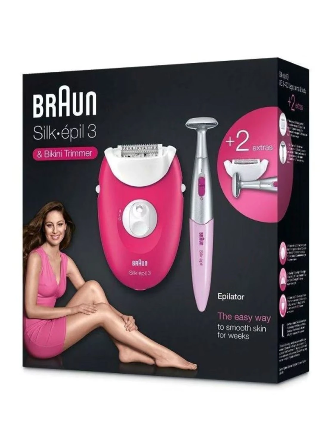 Braun 2-Piece Silk Epil Epilator And Bikini Trimmer Set Raspberry Pink/White 22x20x9centimeter