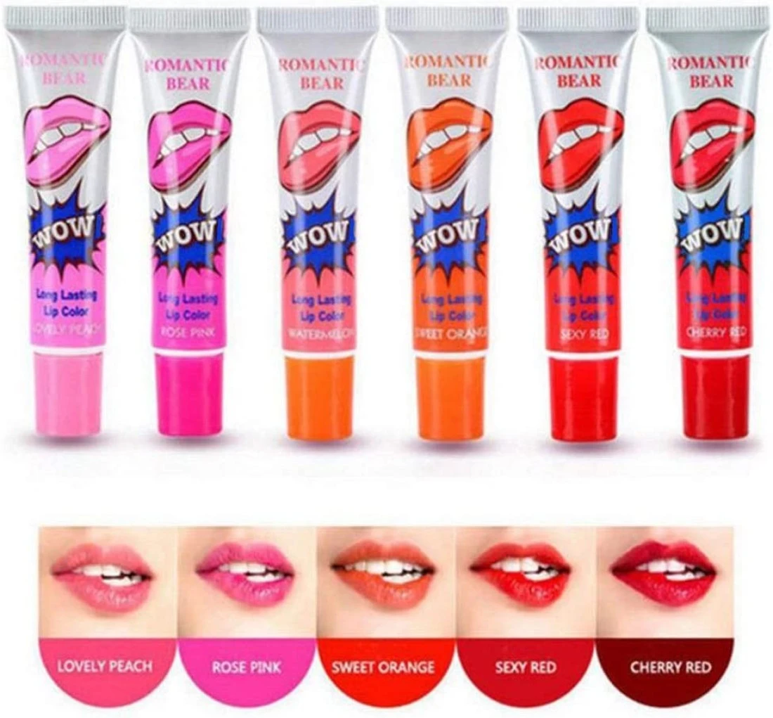 Romantic bear 6-Piece Peel-Off Lip Gloss Mask Tint Pack - (Multicolour)