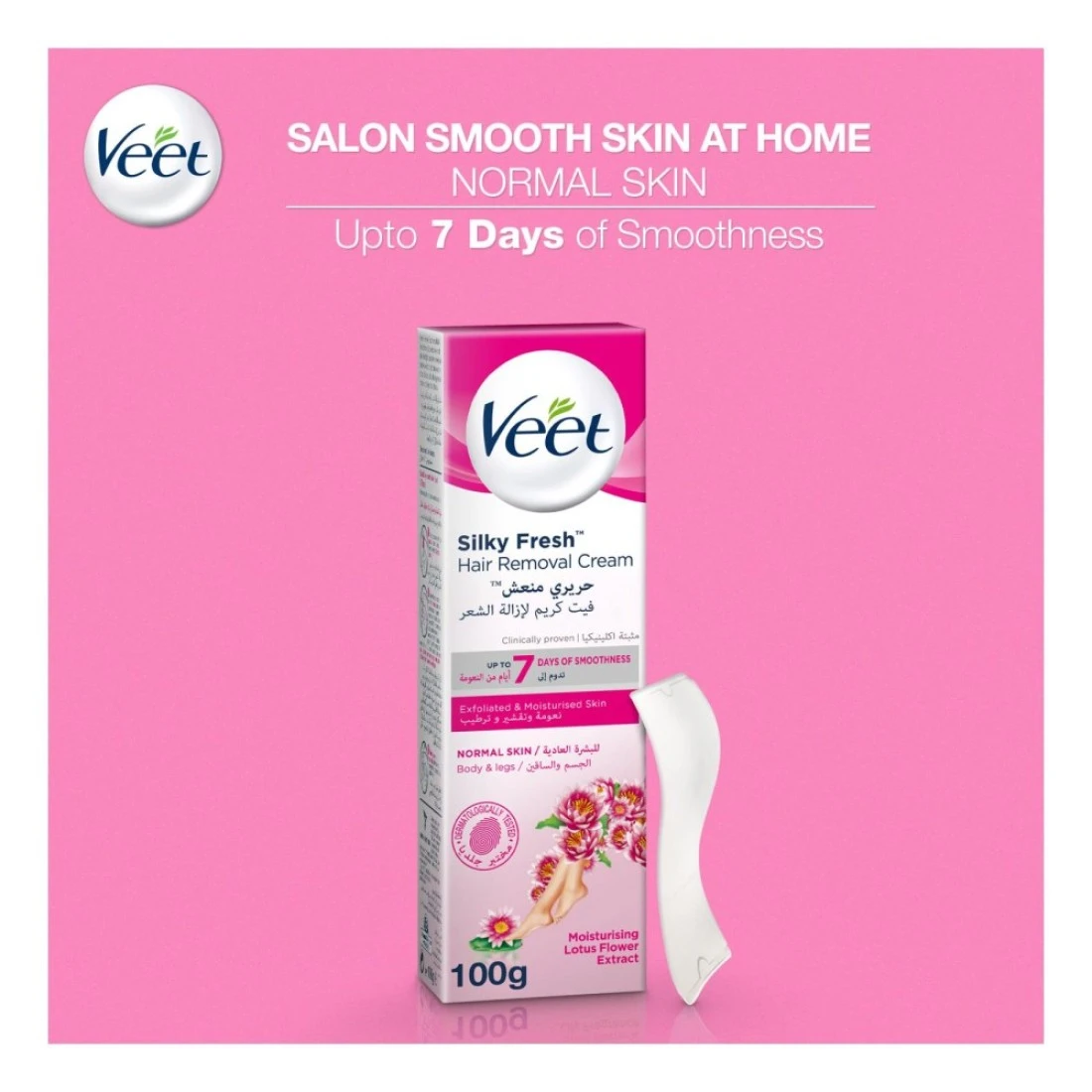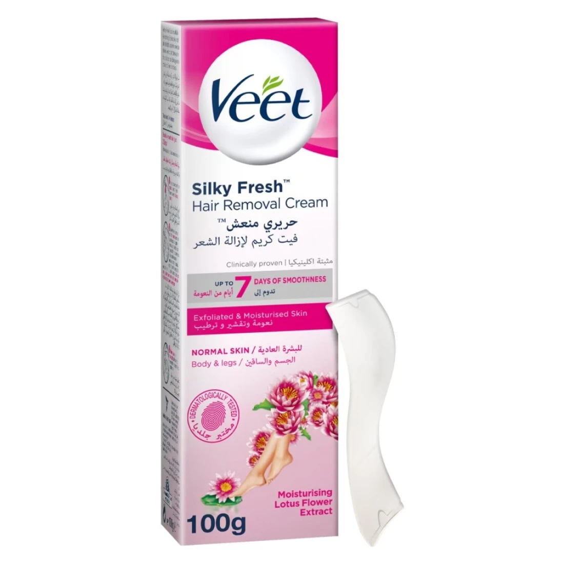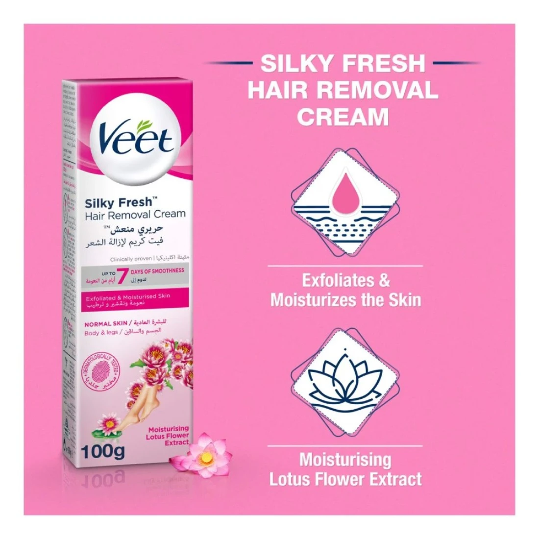 - تنعيم البشرة: كريم إزالة الشعر الذي ثبتت فعاليته سريريًا مصنوع من حليب اللوتس المعروف بتفتيح وتنعيم البشرة