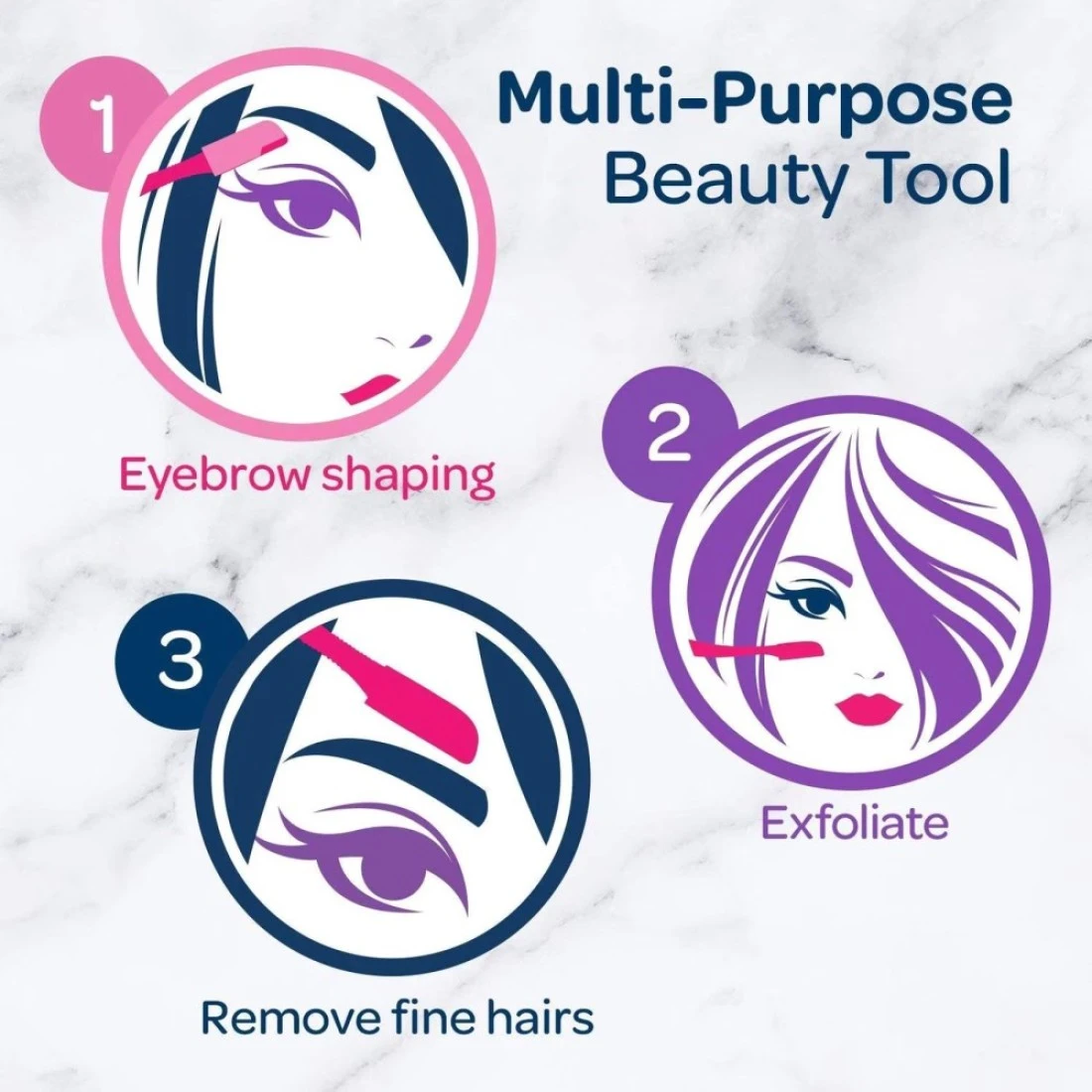 - تقوم أداة التجميل متعددة الاستخدامات هذه بتشكيل الحواجب وإزالة الشعر الناعم وتنعيم البشرة بلطف. التقشير