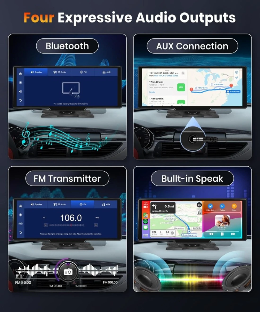 podofo 10.26 Touchscreen Portable Wireless Apple Carplay Car Stereo, Portable Car Screen Compatible with Bluetooth Hands-Free/GPS Navigation/Siri Assistant/Voice Control,7V-32V Suit for All Vehicles